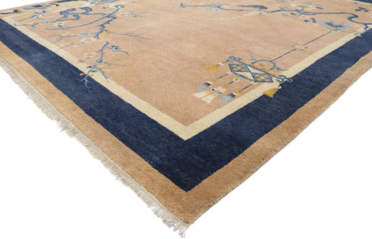 9 x 12 - Tan Antique Chinese Art Deco Rug - 77583