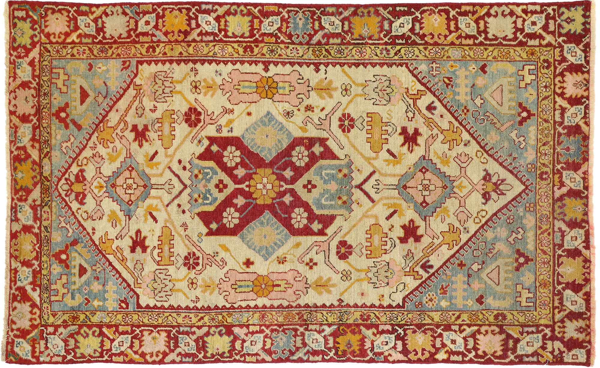73905 Vintage Turkish Oushak Rug, 03'11 x 06'03.