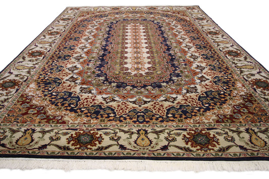 11 x 14 - Beige Antique Persian Tabriz Rug - 76607