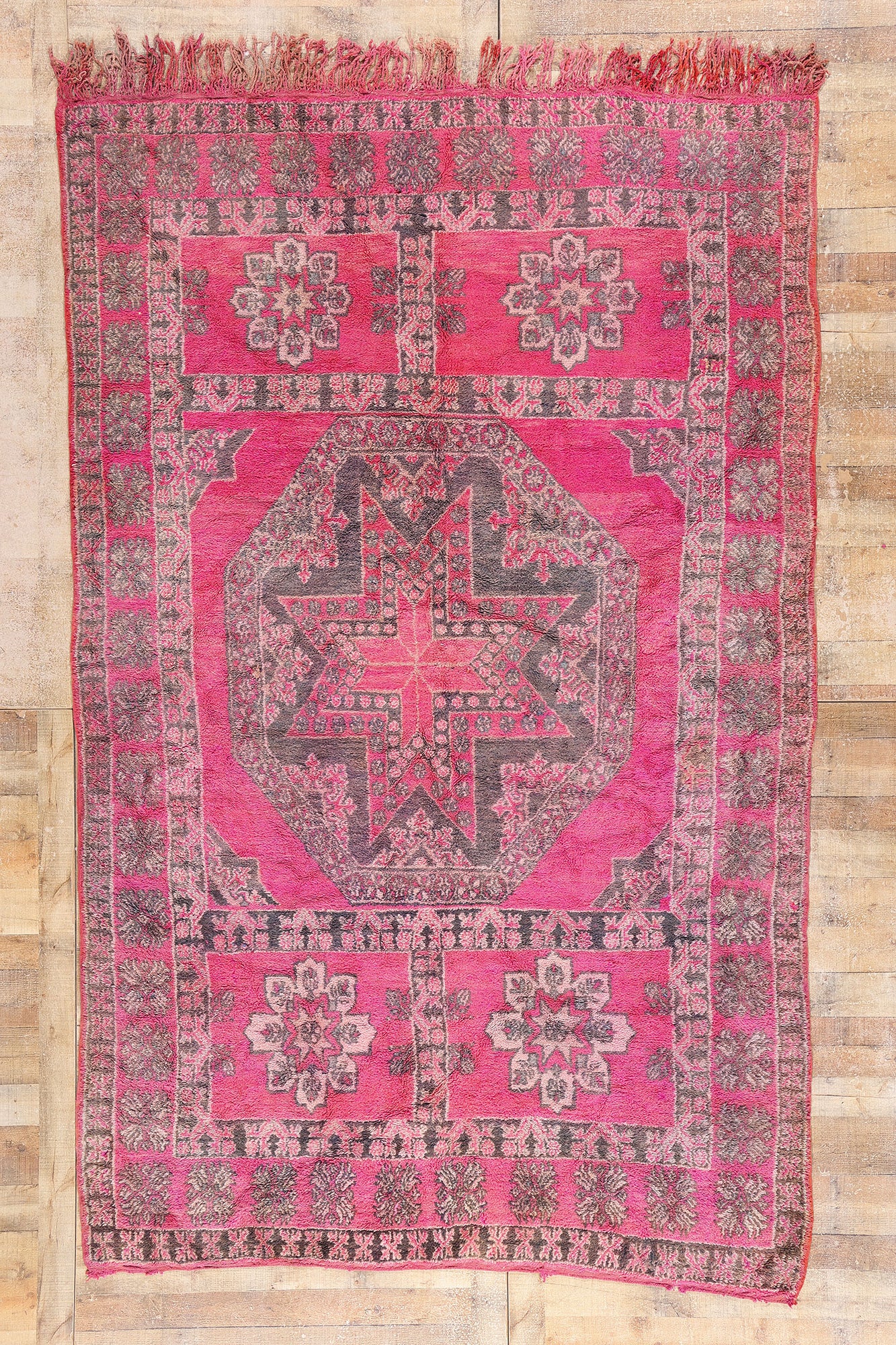 The Pink Magenta Star: A Vintage Talsint Moroccan Masterpiece of Tribal Radiance