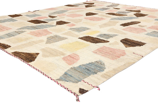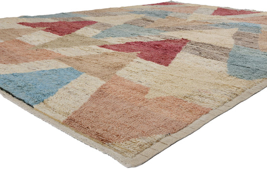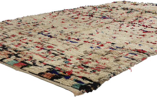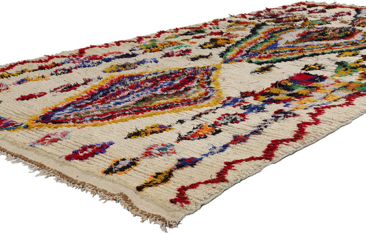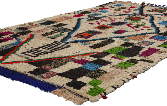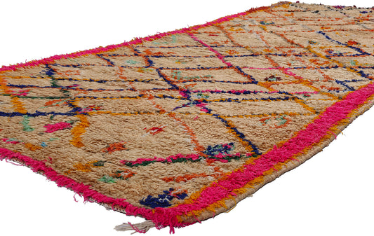 - Azilal Rugs: Azilal rugs are known for their vibrant and colorful designs, featuring abstract geometric patterns and bright, contrasting colors on a natural wool base or beige background.