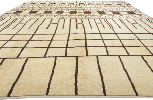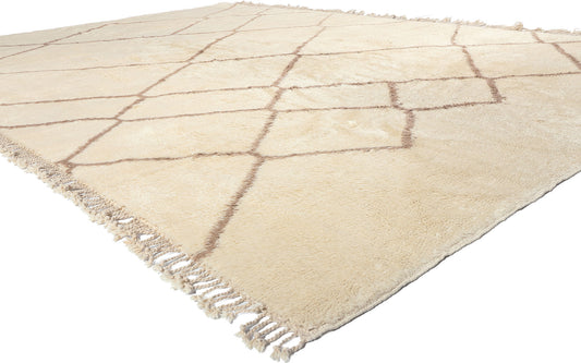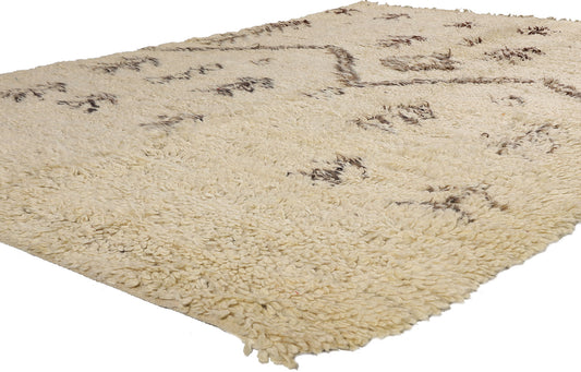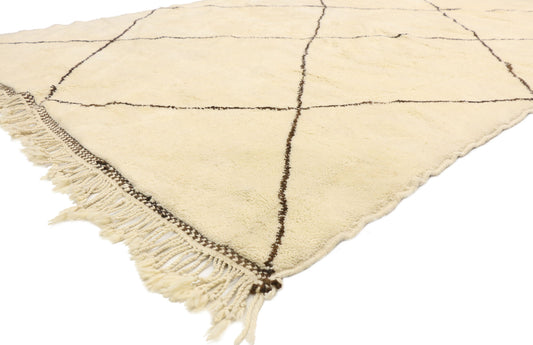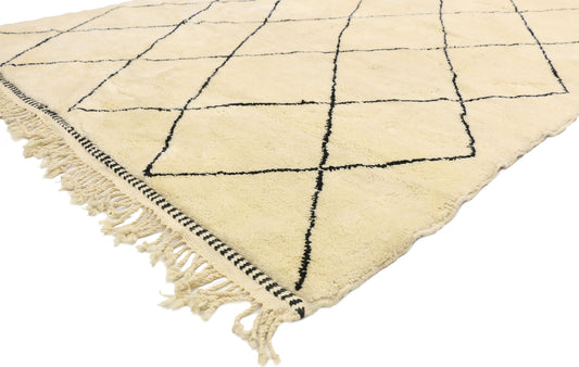 - Beni Ourain (Beni Ouarain) Rugs: Beni Ourain rugs are famous for their simple, modern designs, with cream or white backgrounds and geometric black or brown lines.