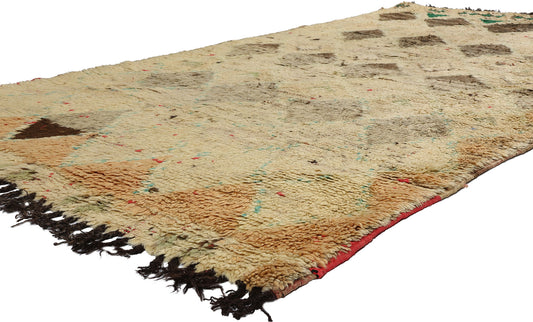 - Azilal Rugs: Azilal rugs are known for their vibrant and colorful designs, featuring abstract geometric patterns and bright, contrasting colors on a natural wool base or beige background.