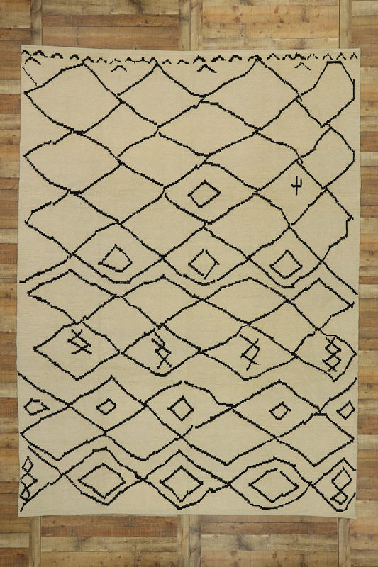 - Beni Ourain (Beni Ouarain) Rugs: Beni Ourain rugs are famous for their simple, modern designs, with cream or white backgrounds and geometric black or brown lines.
