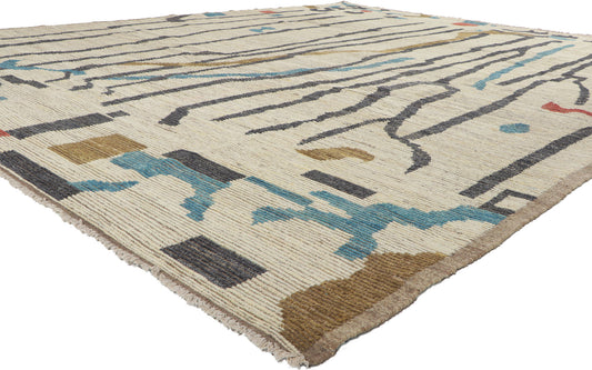 - Azilal Rugs: Azilal rugs are known for their vibrant and colorful designs, featuring abstract geometric patterns and bright, contrasting colors on a natural wool base or beige background.