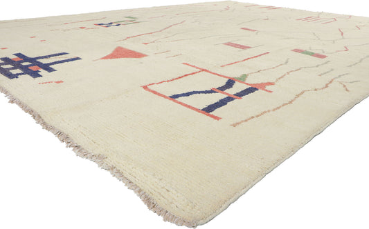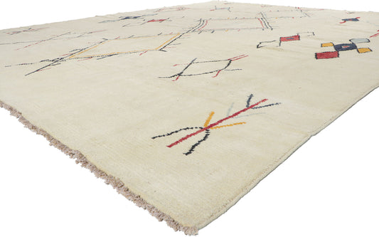 - Azilal Rugs: Azilal rugs are known for their vibrant and colorful designs, featuring abstract geometric patterns and bright, contrasting colors on a natural wool base or beige background.