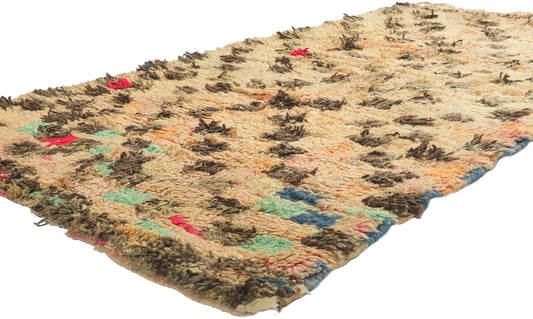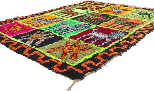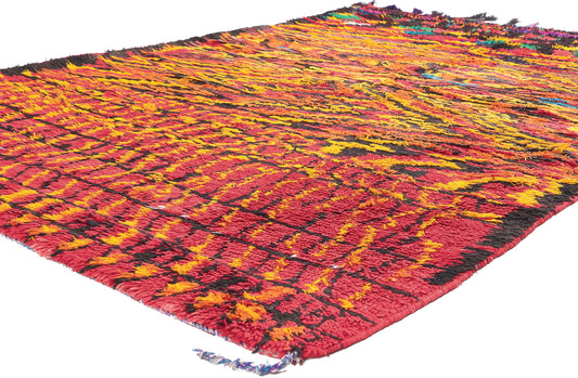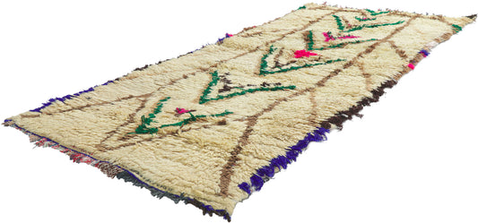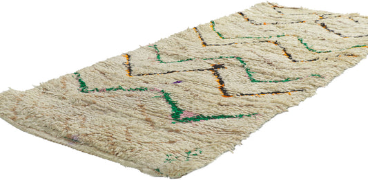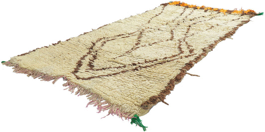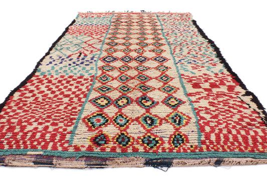 - Azilal Rugs: Azilal rugs are known for their vibrant and colorful designs, featuring abstract geometric patterns and bright, contrasting colors on a natural wool base or beige background.