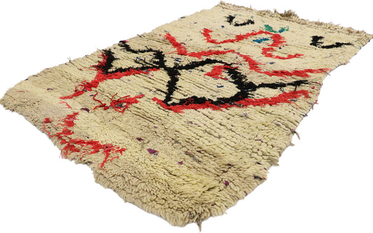 - Azilal Rugs: Azilal rugs are known for their vibrant and colorful designs, featuring abstract geometric patterns and bright, contrasting colors on a natural wool base or beige background.