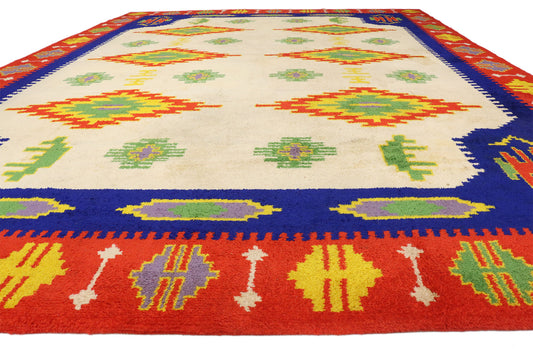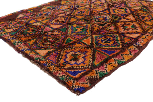 - Azilal Rugs: Azilal rugs are known for their vibrant and colorful designs, featuring abstract geometric patterns and bright, contrasting colors on a natural wool base or beige background.