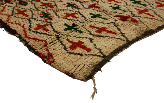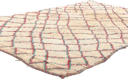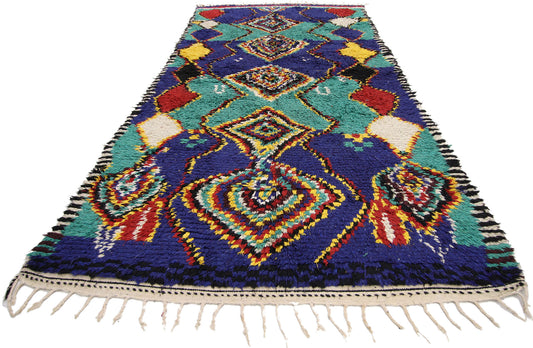- Azilal Rugs: Azilal rugs are known for their vibrant and colorful designs, featuring abstract geometric patterns and bright, contrasting colors on a natural wool base or beige background.
