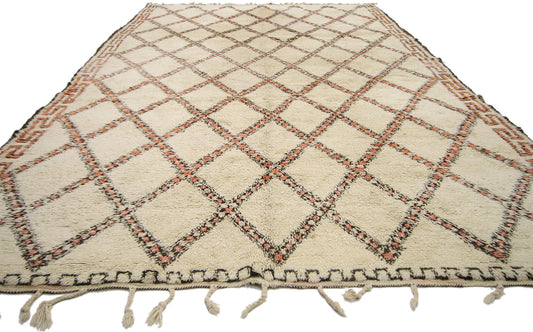 - Beni Ourain (Beni Ouarain) Rugs: Beni Ourain rugs are famous for their simple, modern designs, with cream or white backgrounds and geometric black or brown lines.