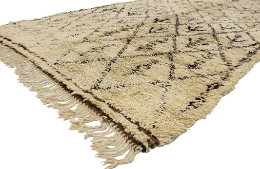 - Beni Ourain (Beni Ouarain) Rugs: Beni Ourain rugs are famous for their simple, modern designs, with cream or white backgrounds and geometric black or brown lines.