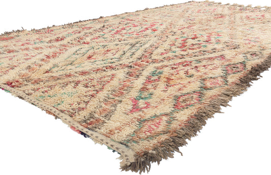 - Azilal Rugs: Azilal rugs are known for their vibrant and colorful designs, featuring abstract geometric patterns and bright, contrasting colors on a natural wool base or beige background.