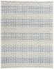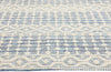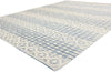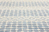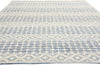 The color palette of this rug is light and airy, dominated by soft shades of blue and ivory-beige. These soothing colors create a tranquil and refreshing atmosphere, reminiscent of a breezy coastal retreat. The repeating geometric motifs, highlighted in ivory-beige against a blue background, bring a sense of depth and dimension to the design, while maintaining a harmonious and balanced look. This subtle contrast between the colors and textures adds to the rug's overall elegance without overwhelming the senses.