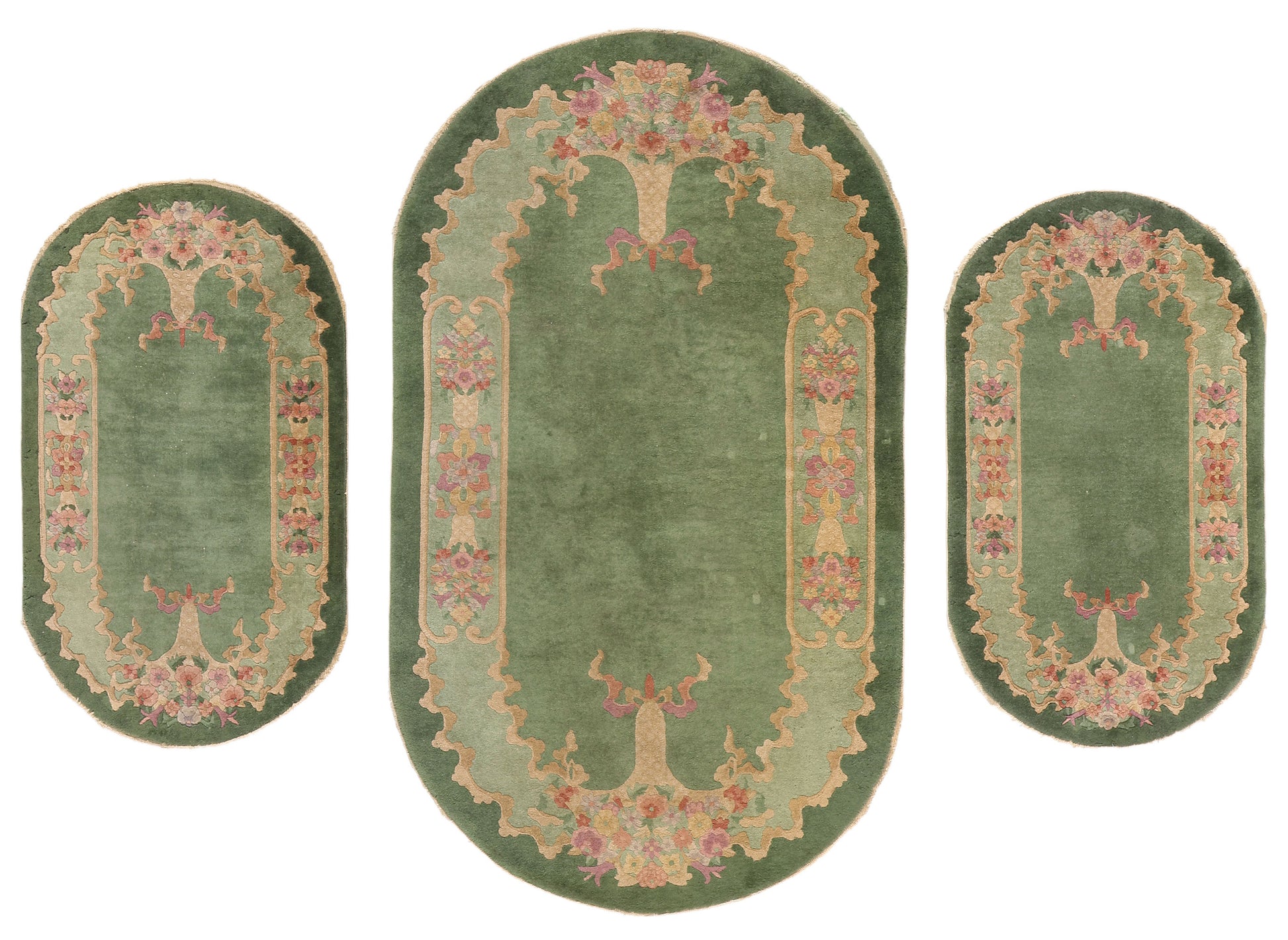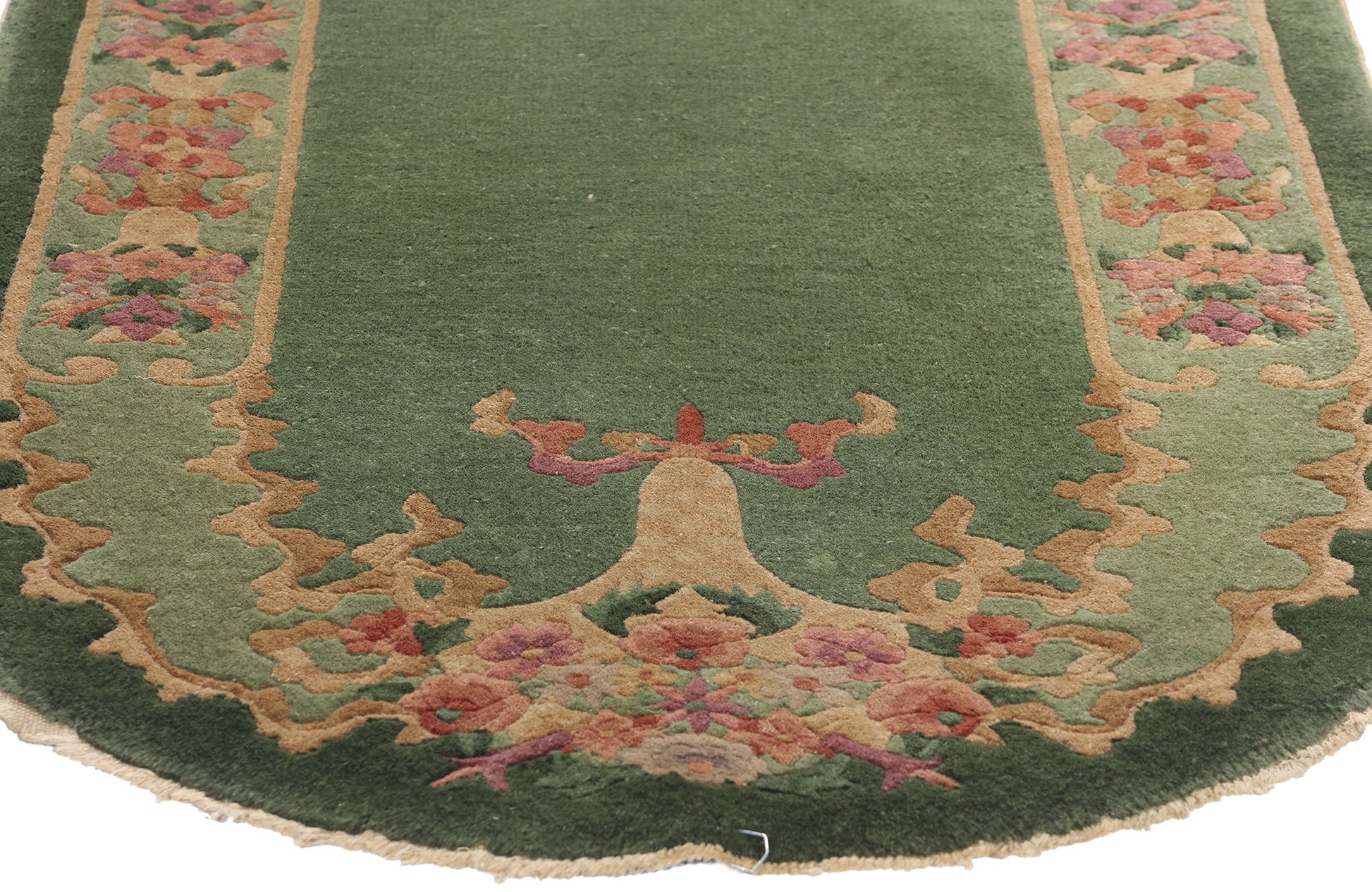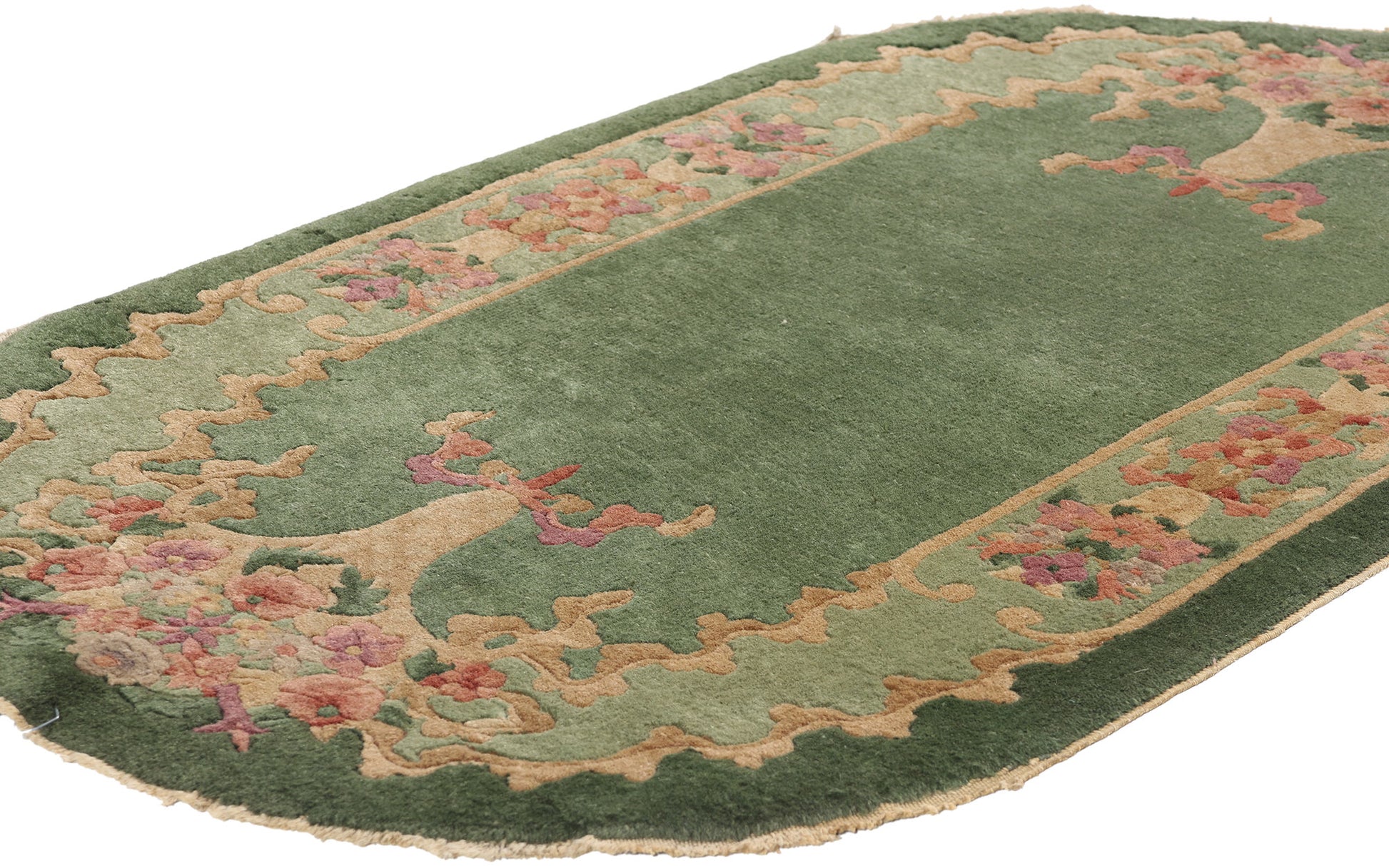 - 3 x 4 Antique Green Chinese Art Deco Oval Rug 78990.