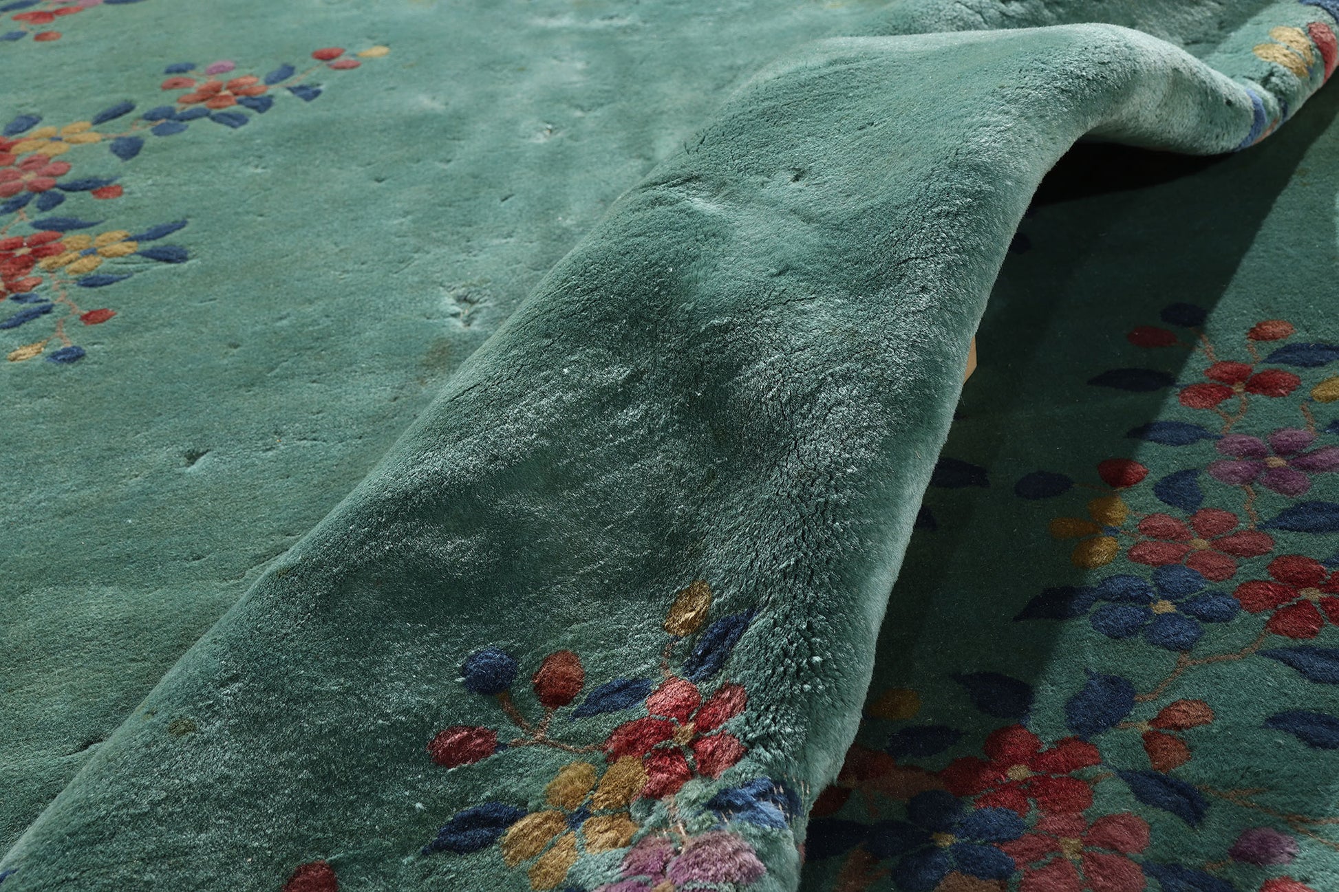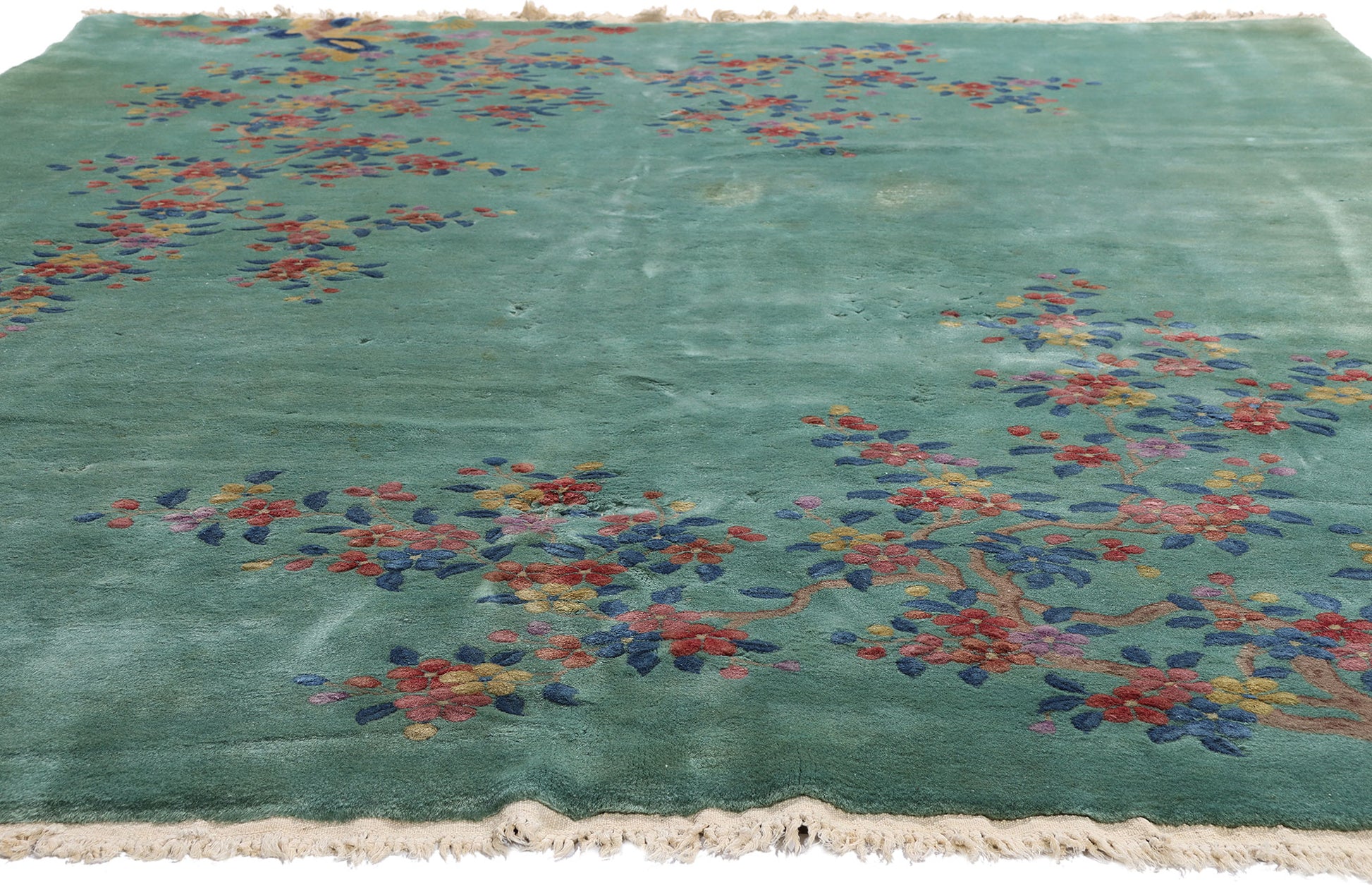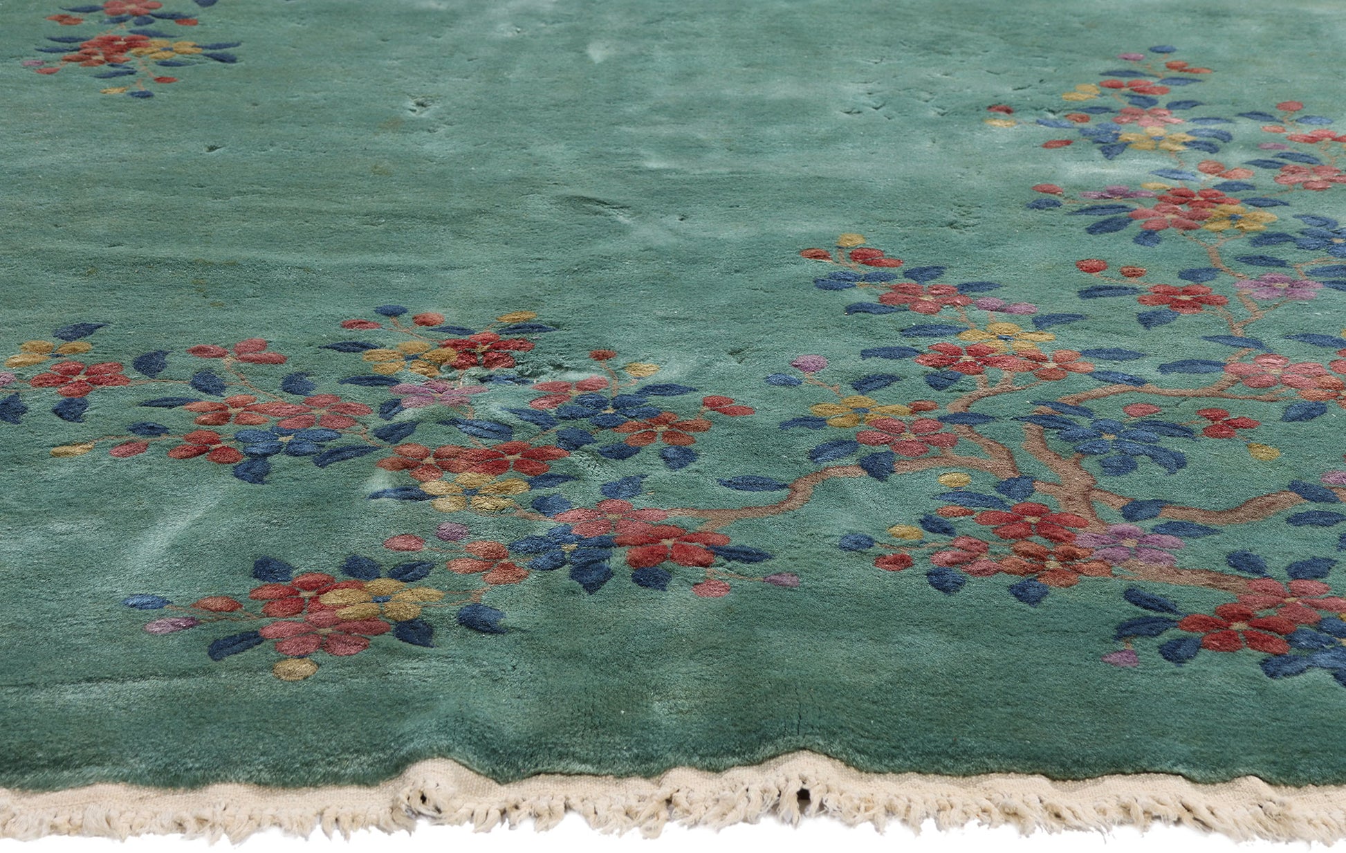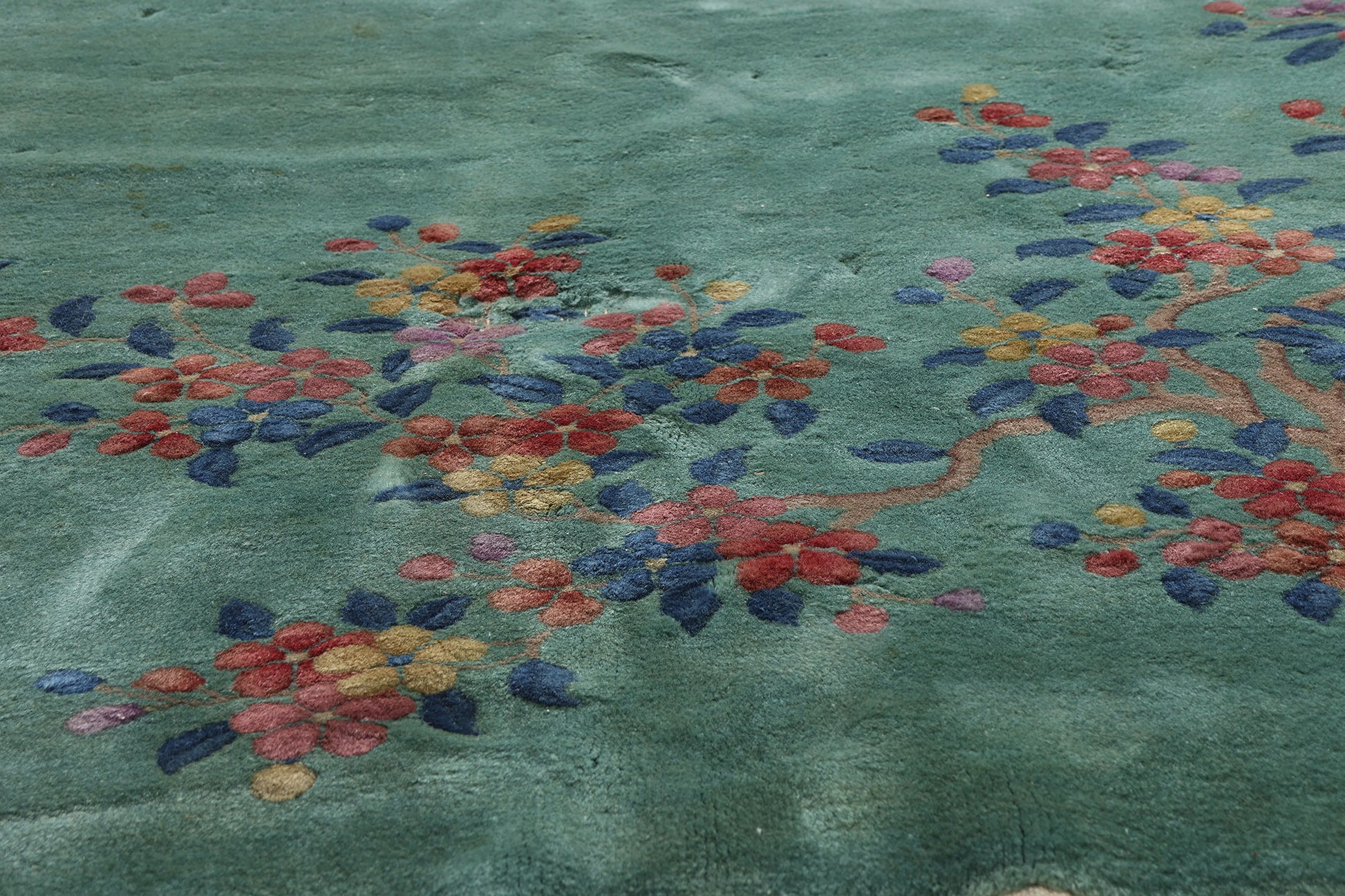 The Jade Blossom: A Rare 1930s Chinese Art Deco Rug of Chinoiserie Elegance