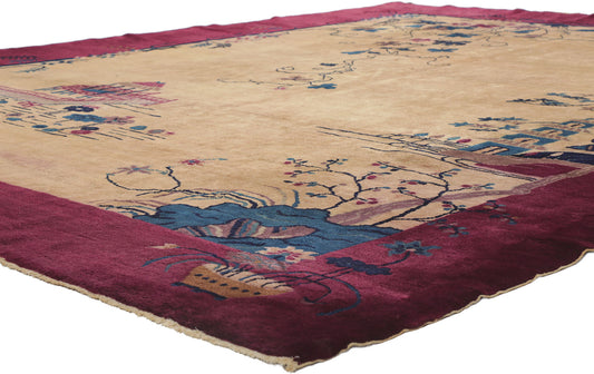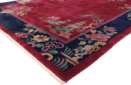 The production of the Chinese Art Deco rugs in our collection began in China during the 1920s, mainly in Tianjin and Beijing. However, Shanghai was the cultural hub where the East-meets-West style flourished, inspiring not just Chinese Art Deco carpets but also extending to fashion, architecture, and interior design. The blend of local Chinese traditions with Western modernism resulted in vibrant colors, exotic motifs, and bold geometric patterns that inescapably draw the eye.