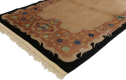 - Geometric Patterns: Unlike traditional Oriental rugs, Chinese Art Deco rugs for sale feature simpler, more geometric patterns. These designs often incorporate balanced asymmetry, reflecting the Art Deco movement’s emphasis on simplification and modernism.