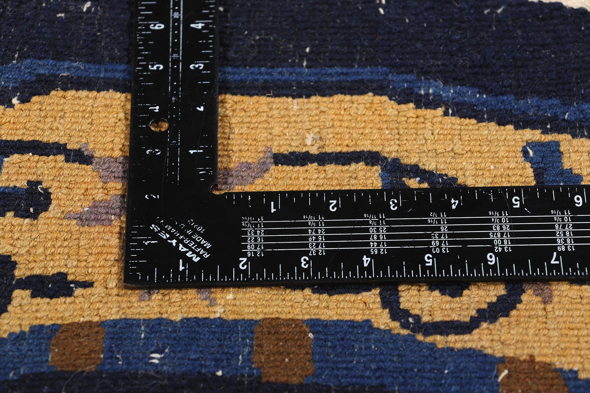 Encircled by a golden border with delicate floral scrolls, this round Peking rug is not only a work of art but also a symbol of good fortune and well-being. The luxurious wool pile, along with the intricate details, reflects the exceptional craftsmanship typical of Peking rugs. With its elegant blend of pictorial storytelling and deep-rooted Chinese symbolism, this vintage round Peking rug would bring a sense of harmony, elegance, and cultural richness to any interior space, making it a treasured addition to both traditional and contemporary settings alike.