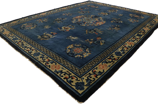 Our collection of Chinese carpets embodies the rich East Asian heritage, blending haute deco with Old World style. Infuse opulent colors into your space and add a touch of the unexpected with our vintage Chinese rugs. Steeped in folklore, culture, and history, our antique Chinese carpets for collectors reflect religious and philosophical elements, incorporating images and designs symbolizing the fascinating land of China. Find lotus blossoms, Kuilong dragons, nature scenes, clouds, birds, and assorted ornamental objects in these Chinese rugs for sale. Considered highly collectible in today's market, authentic Chinese rugs online are sought after by high-end interior designers, architects, rug enthusiasts, museums, and hospitality businesses that wish to make an impeccable impression on visitors.