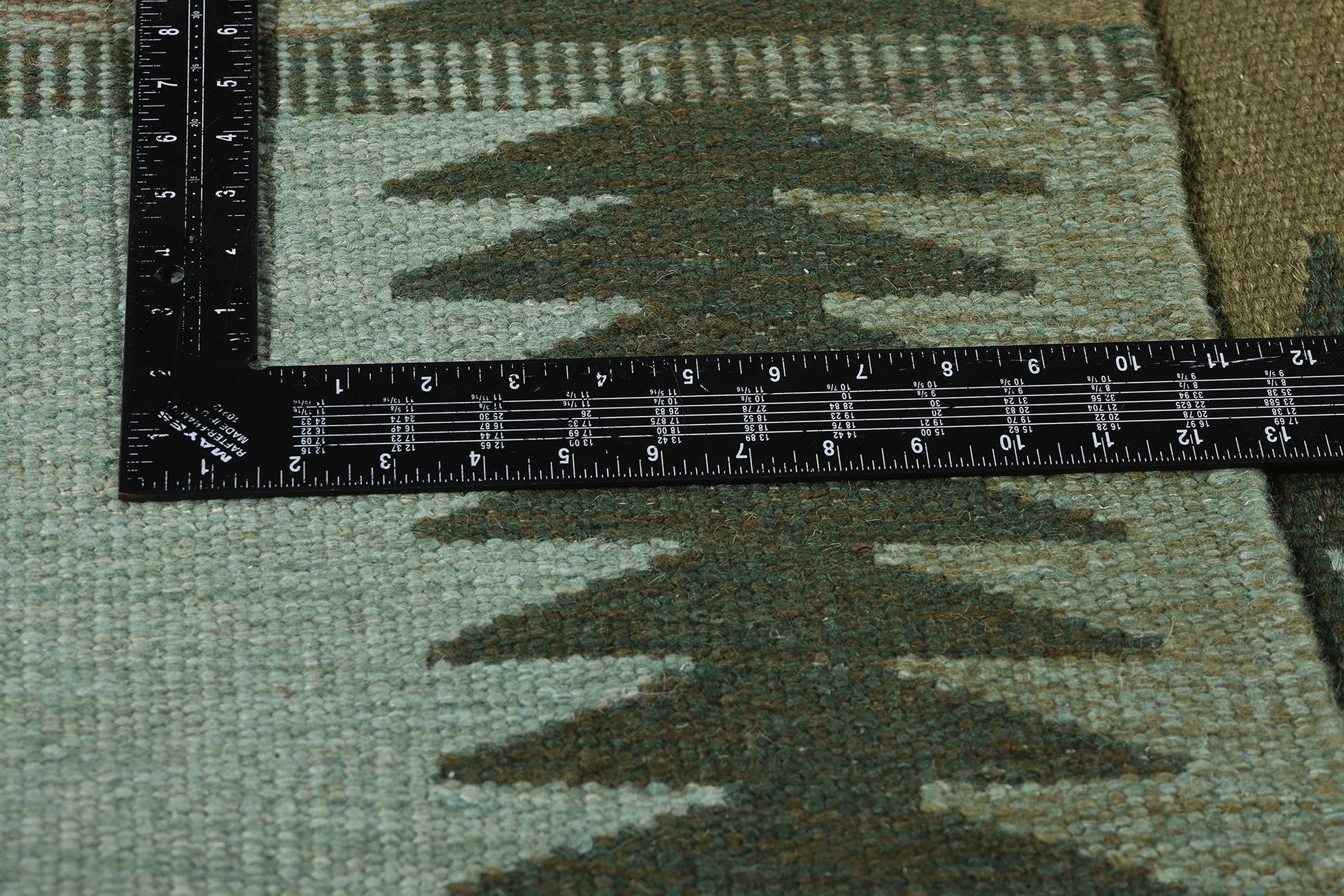 9 x 12 Scandinavian Modern Green Swedish Inspired Kilim Rug 31118