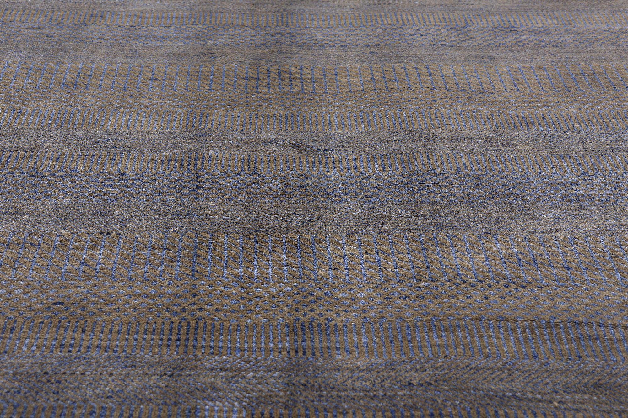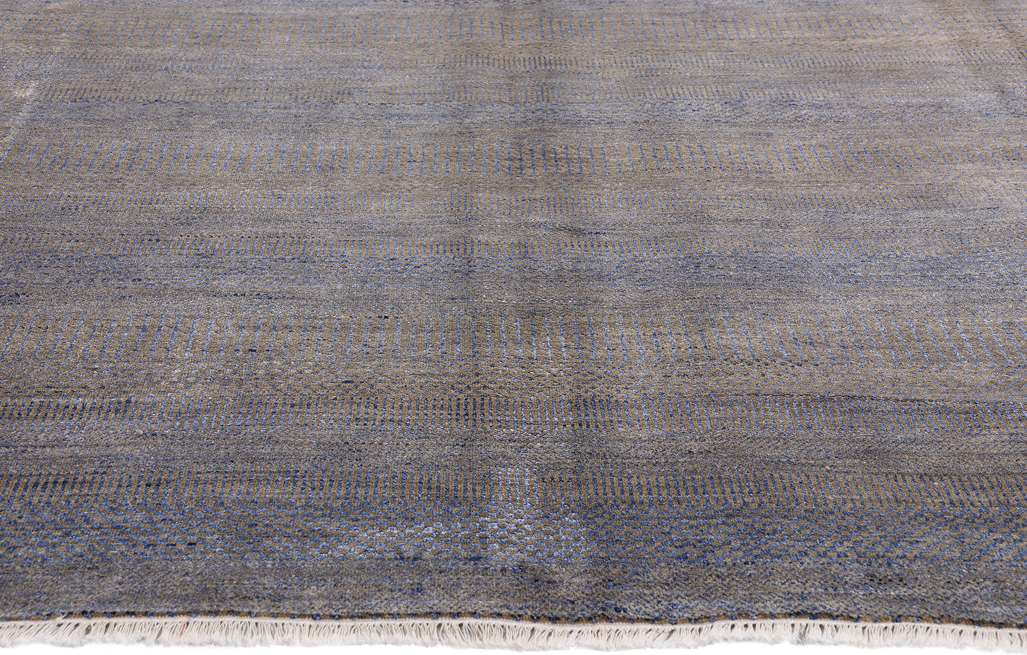 A symphony of subtlety and sophistication, this hand-knotted wool and silk transitional rug from India embodies the perfect harmony between classical refinement and modern sensibility. Its muted tones of gray, silvery blue and earthy taupe are woven into a delicate interplay of texture and sheen, producing a quiet radiance that shifts with the light. The restrained palette and refined weaving technique transform this piece into a statement of understated luxury, ideal for interiors that exude grace without ostentation.