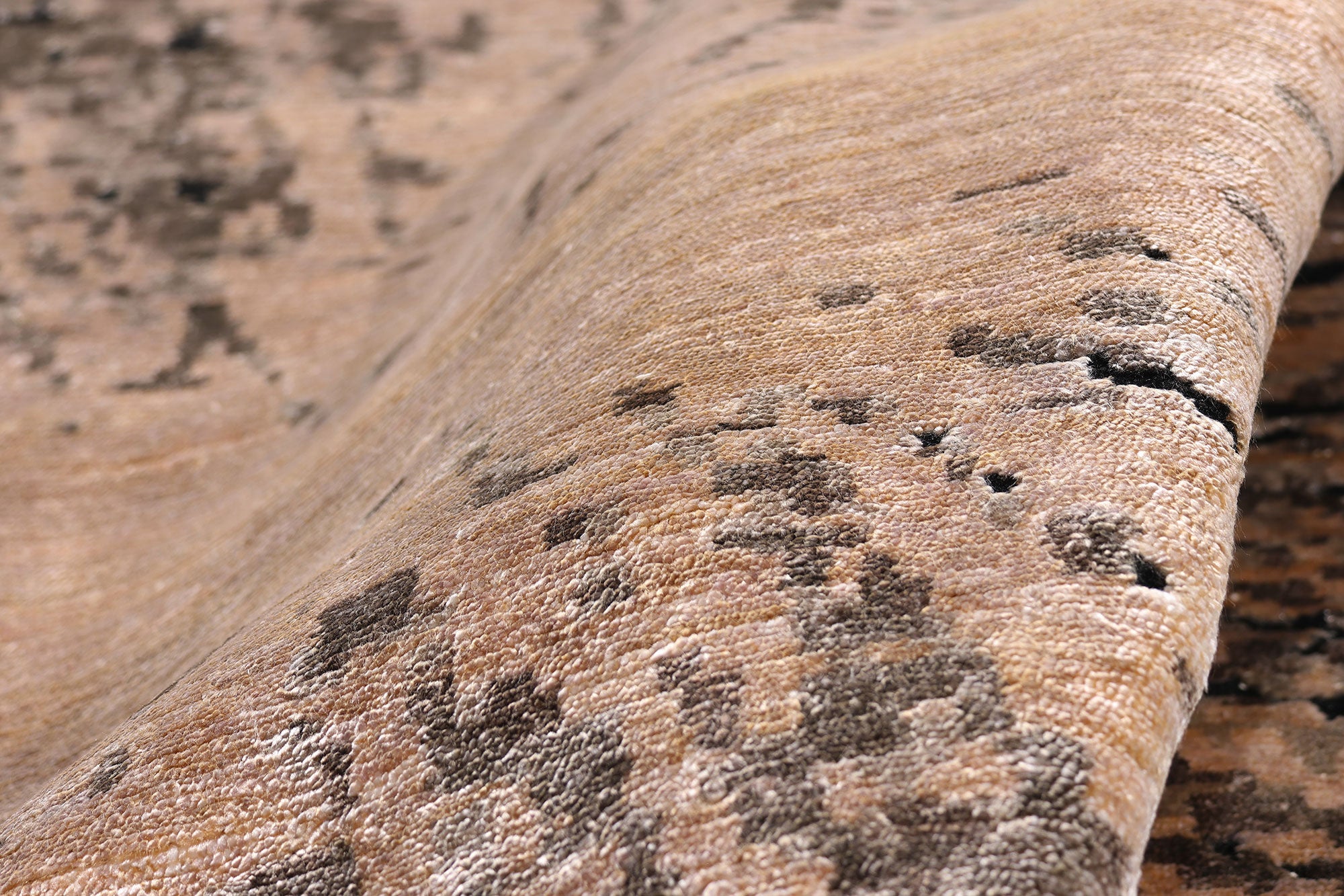 The exceptional pattern unfolds in layered tonal gradations, where warm mineral hues and softened neutrals dissolve into one another with painterly finesse. Silk accents catch the light with subtle brilliance, creating a dynamic surface that shifts throughout the day. These luminous threads elevate the composition, lending a refined glow that contrasts beautifully against the deeper, velvety wool foundation. The result is a living surface, one that responds to its environment with understated elegance.