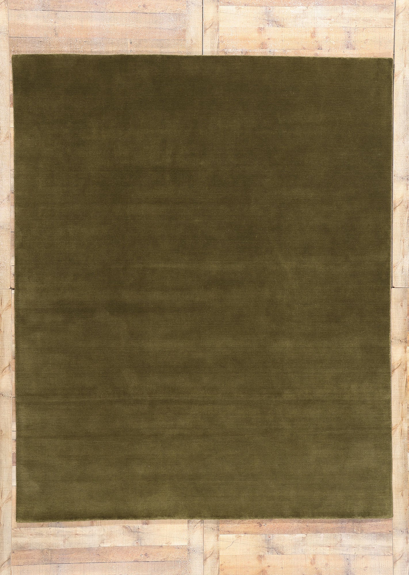 This Solid Olive Green Modern Area Rug perfectly marries biophilic design with an earthy, sophisticated aesthetic. Handcrafted with exquisite detail, its rich olive green color, interwoven with shades of Spanish moss, evokes the serenity of tranquil landscapes. The soft gradations and tonal variations across this modern Indian rug add depth and texture, capturing the essence of nature's subtle beauty.