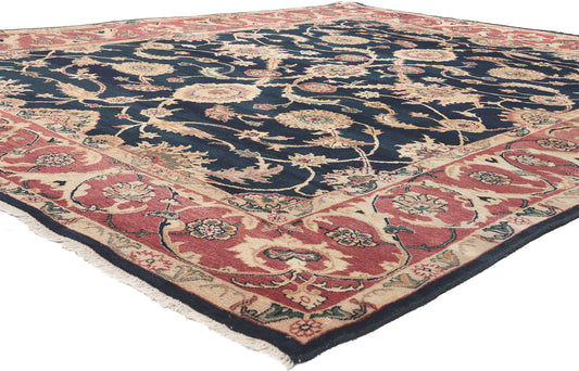 Although the height of Indian carpet weaving existed during the Mughal Dynasty, British colonization in the 19th century revitalized the art of rug weaving. In addition to flower and animal scenes, antique Indian rugs crafted during this time displayed vividly compelling calligraphic and geometric patterns to complement spacious interiors of royal palaces and wealthy British homes. Muted color patterns and hints of classical Persian and Indian motifs catered to specific decorative preferences of the European elite.