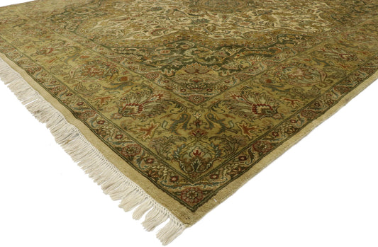Inspired by Kashan, Esfahan and Kirman designs, these antique Indian rugs beautifully depicted Indian royal life, exquisite floral images and native animals in warm browns, reds and yellows. Silks and wools have always been essential materials in making knotted antique Indian rugs and carpets. Wool types depended on the region in which rugs were made, while silk knots were primarily found in the Kashmir area.