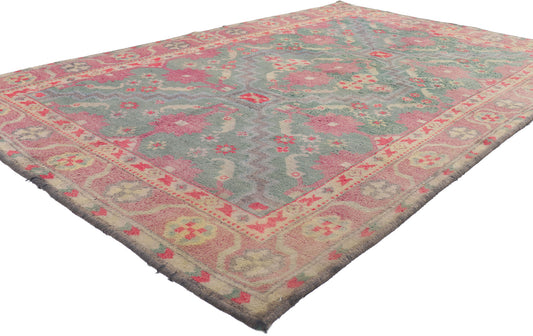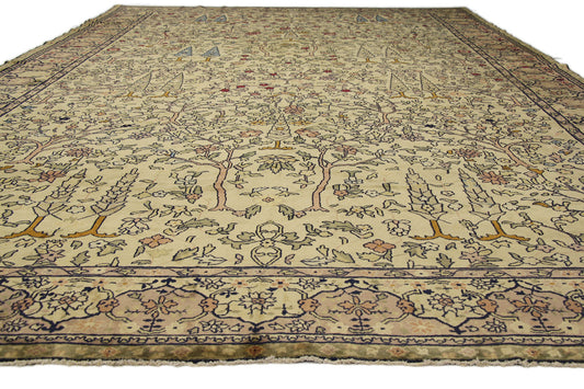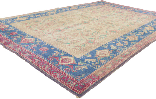 Although the height of Indian carpet weaving existed during the Mughal Dynasty, British colonization in the 19th century revitalized the art of rug weaving. In addition to flower and animal scenes, antique Indian rugs crafted during this time displayed vividly compelling calligraphic and geometric patterns to complement spacious interiors of royal palaces and wealthy British homes. Muted color patterns and hints of classical Persian and Indian motifs catered to specific decorative preferences of the European elite.