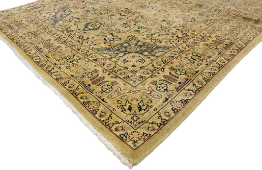Inspired by Kashan, Esfahan and Kirman designs, these antique Indian rugs beautifully depicted Indian royal life, exquisite floral images and native animals in warm browns, reds and yellows. Silks and wools have always been essential materials in making knotted antique Indian rugs and carpets. Wool types depended on the region in which rugs were made, while silk knots were primarily found in the Kashmir area.