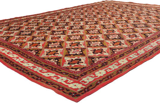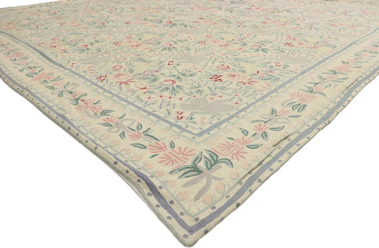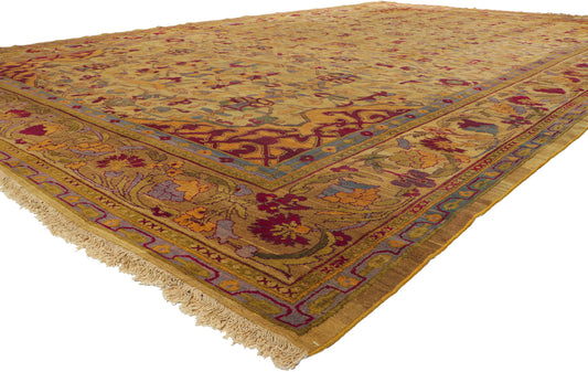 Although the height of Indian carpet weaving existed during the Mughal Dynasty, British colonization in the 19th century revitalized the art of rug weaving. In addition to flower and animal scenes, antique Indian rugs crafted during this time displayed vividly compelling calligraphic and geometric patterns to complement spacious interiors of royal palaces and wealthy British homes. Muted color patterns and hints of classical Persian and Indian motifs catered to specific decorative preferences of the European elite.