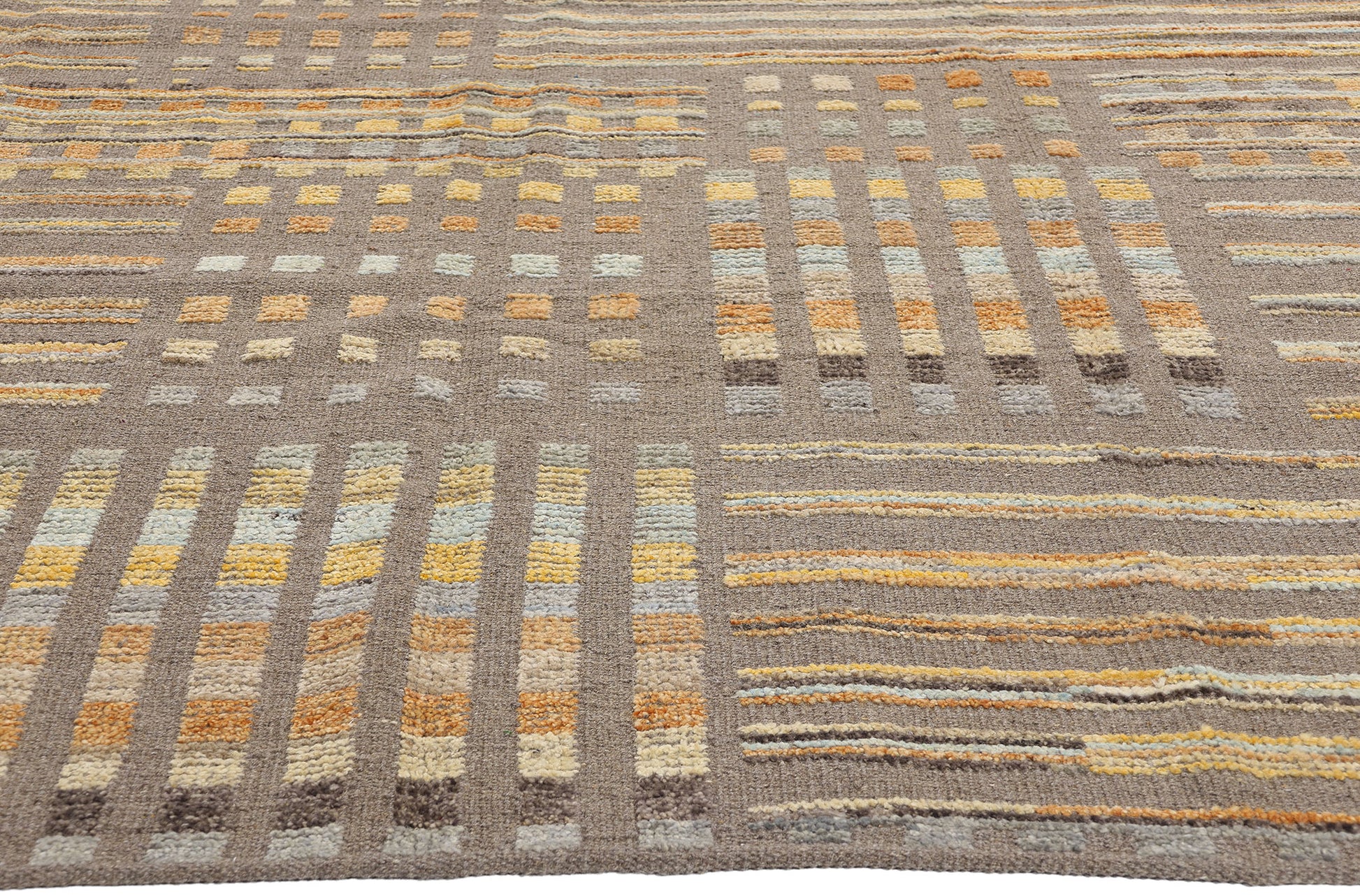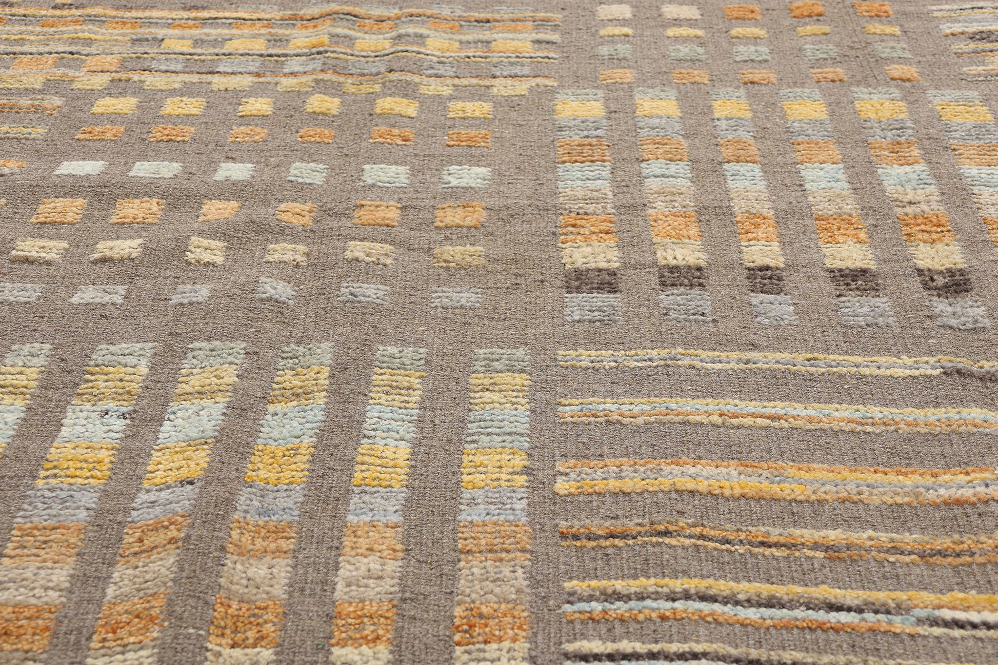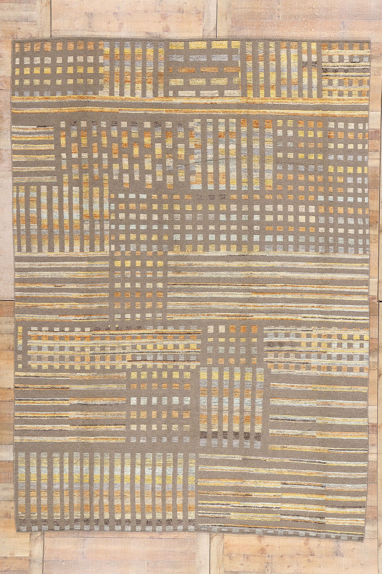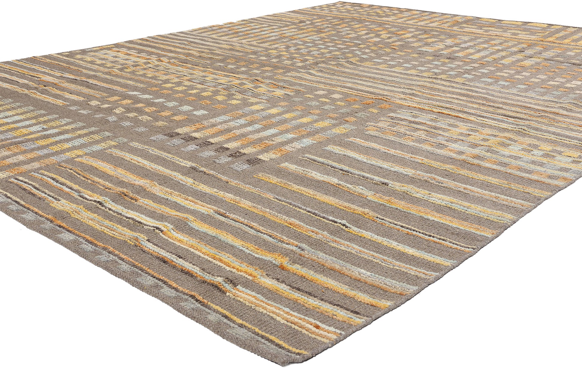 81141 New Modern Mosaic High Low Textured Kilim Rug, 08'08 x 12'00.