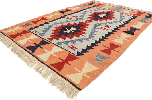 5 x 6 - Orange Vintage Turkish Kilim Rug - 76864