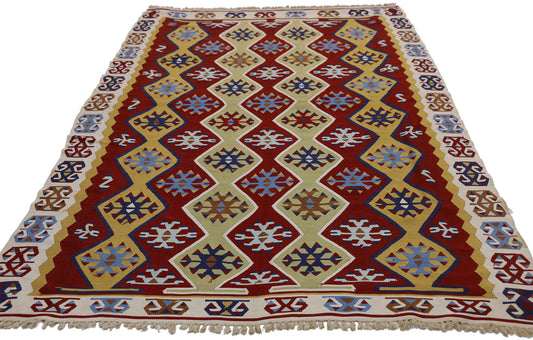 6 x 9 - Red Vintage Turkish Kilim Rug - 51319