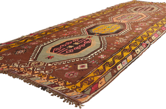 5 x 15 - Brown Vintage Turkish Kilim Rug - 70301