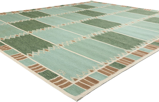 9 x 12 Scandinavian Modern Green Swedish Inspired Kilim Rug 31114
