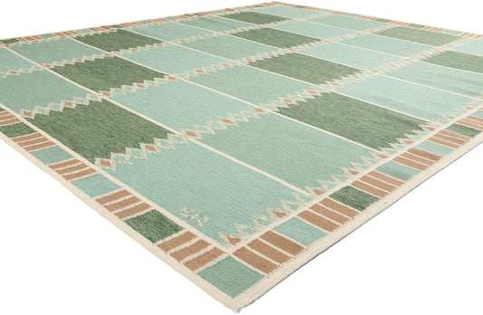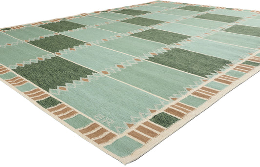 10 x 12 Scandinavian Modern Green Swedish Inspired Kilim Rug 31115