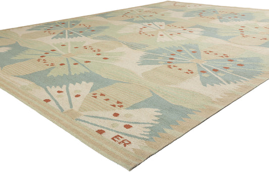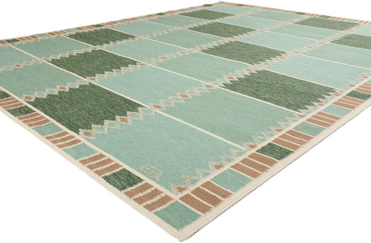 9 x 12 Scandinavian Modern Green Swedish Inspired Kilim Rug 31112