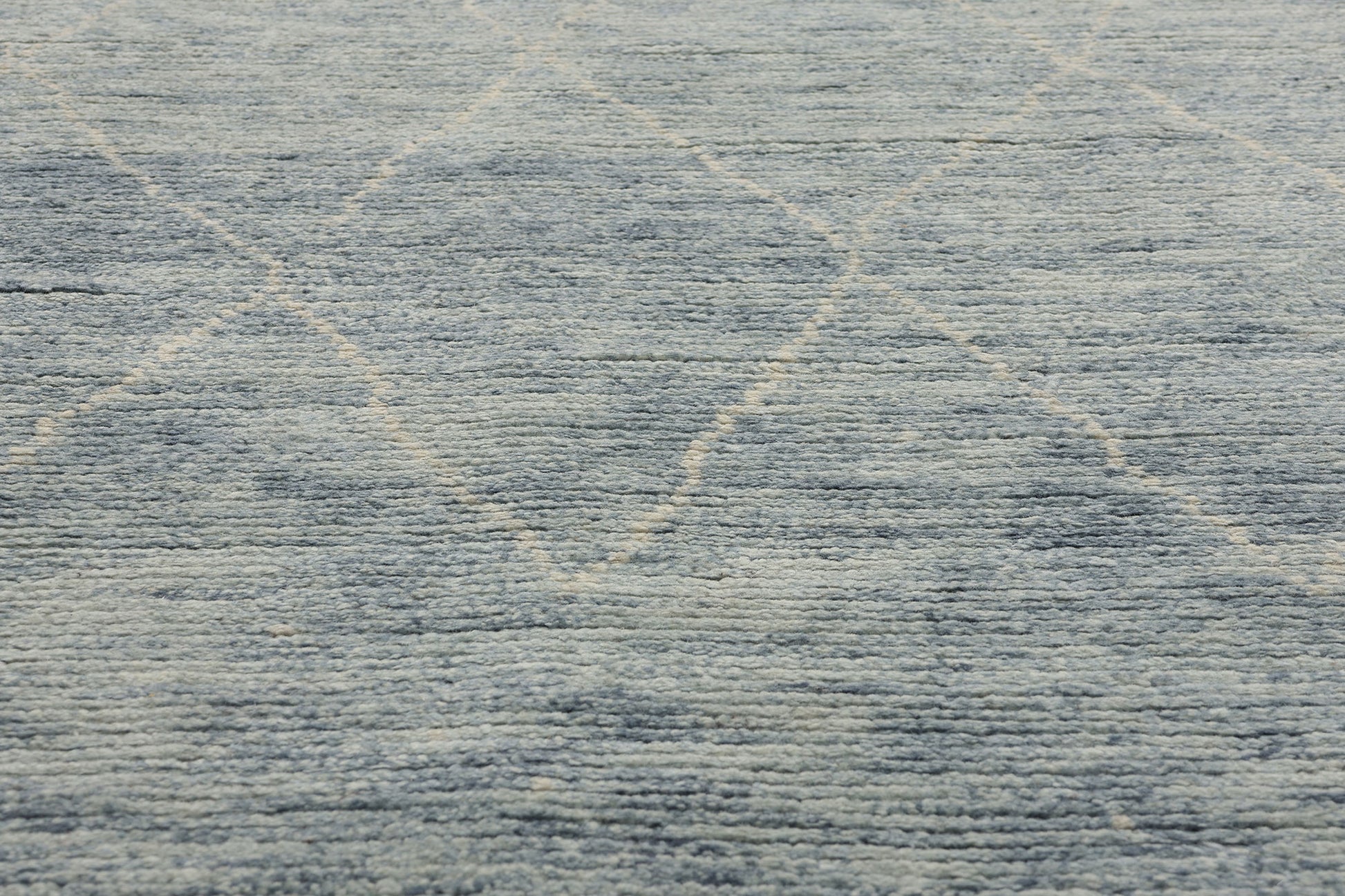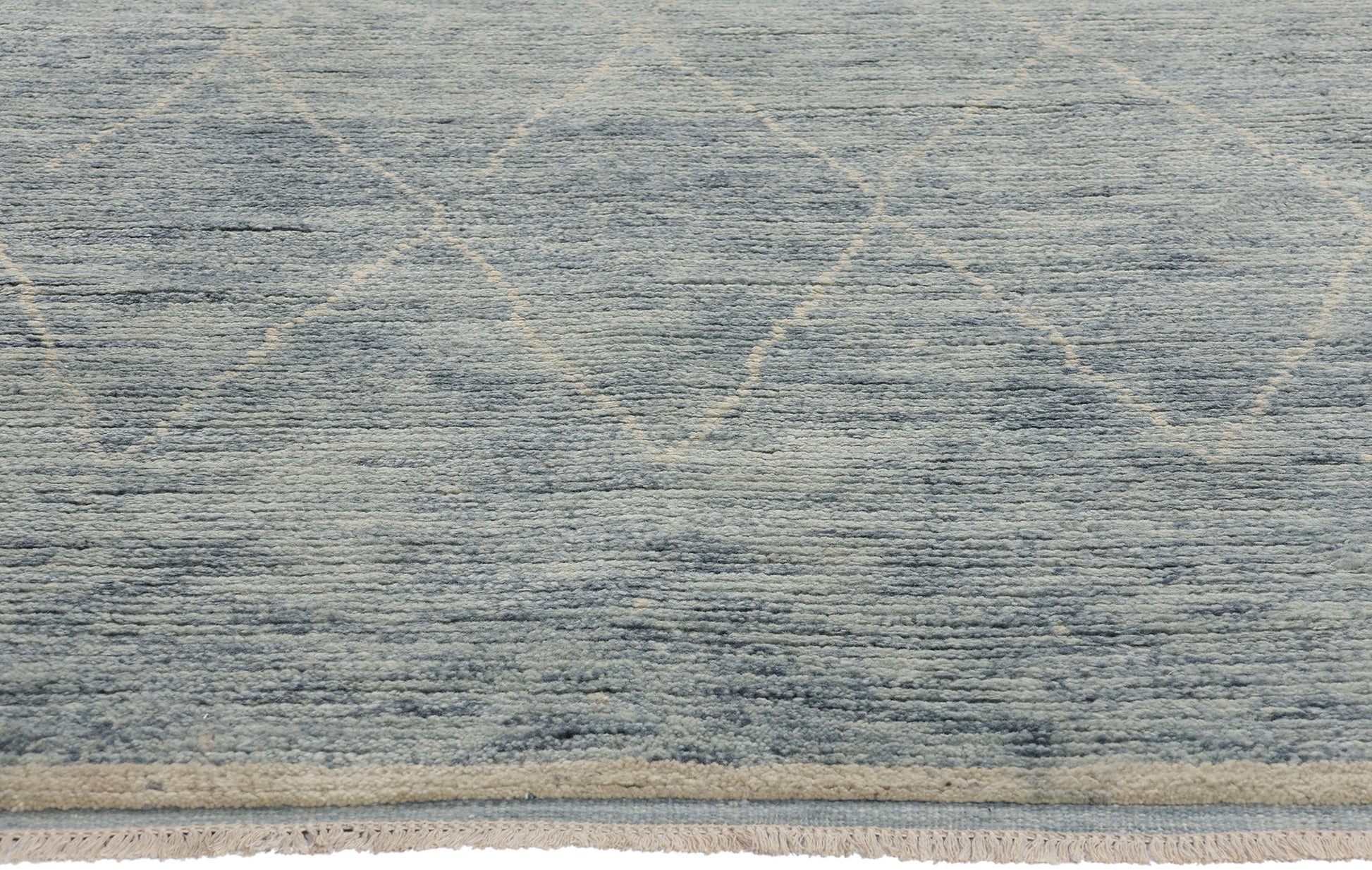 This Azure Horizon Modern Moroccan Rug transports your space to a tranquil, serene setting reminiscent of a peaceful sky meeting the horizon. The soft, hand-knotted wool construction offers a luxurious texture that adds an air of sophistication to nearly any room. The gentle blue hues evoke a sense of calm, while the subtle diamond trellis pattern, woven with precision, brings an understated elegance that speaks of Moroccan craftsmanship with a contemporary twist.