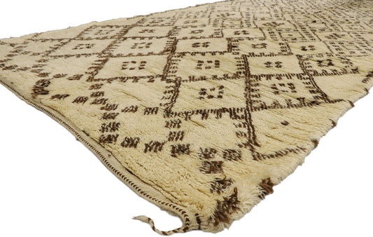 Incredibly plush and durable, Beni Ourain rugs are an icon of understated luxury, revered by designers for their quiet elegance, or a staple in refined interiors. With their nomadic charm, intricate detail, and unique texture, they create a warm and relaxed space. Each piece is meticulously woven by members of several Berber tribes living in the Moroccan Atlas Mountains, from top-grade wool sourced from sheep raised and herded by the Berbers. Distinctive tribal motifs, such as bold diamond lattices, protective Göz eye symbols, chevron stripes, and trellis patterns, emerge in naturally dyed, neutral tones set against a soft beige field, often revealing subtle variations unique to the artisan’s hand.