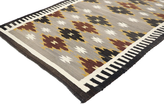 The Whirling Logs design, resembling the swastika, was once a symbol of good luck and positivity in Navajo Rugs. However, it fell out of favor during the late 1930s due to its unfortunate association with the Nazi symbol. Still, it remains a testament to the dynamic evolution of Navajo weaving, showing that even in adversity, the weavers adapt and find new ways to express their heritage.