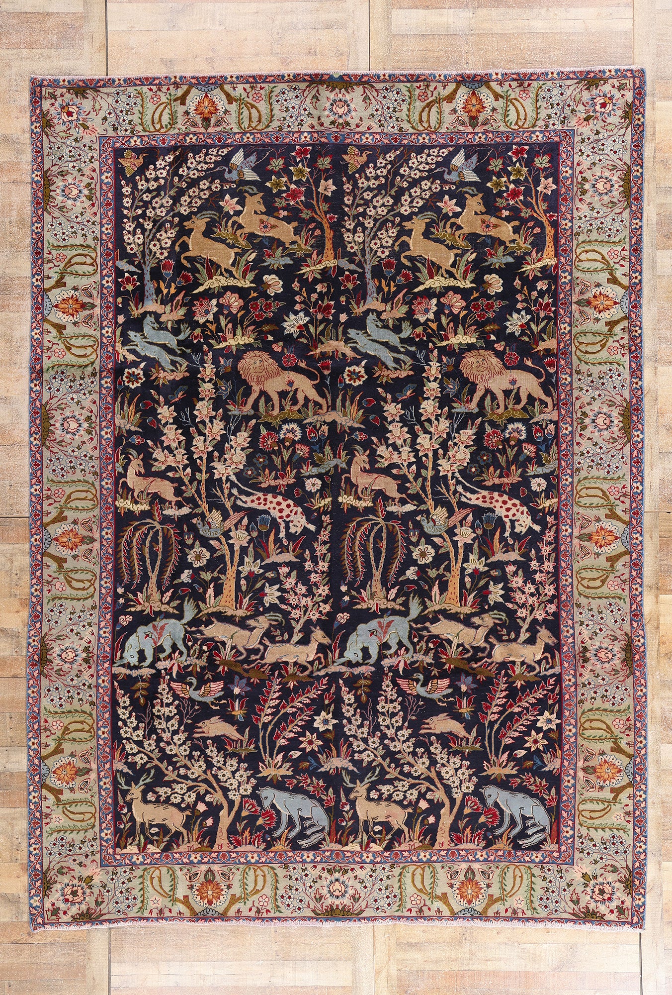 61433 Vintage Persian Najafabad Hunting Rug, 09'05 x 12'11.