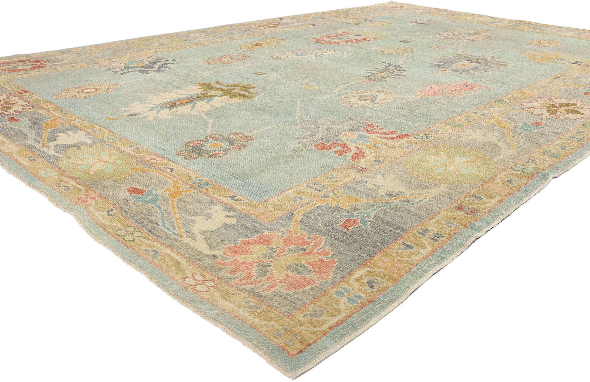 10 x 15 Modern Light Blue Turkish Oushak Rug 53963