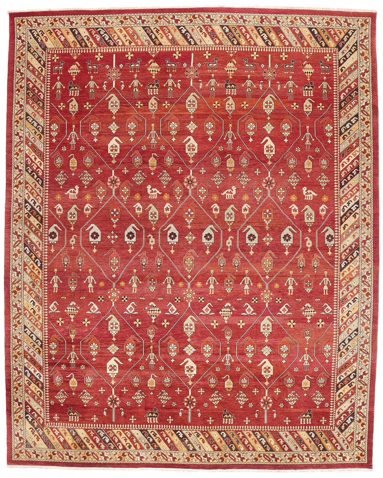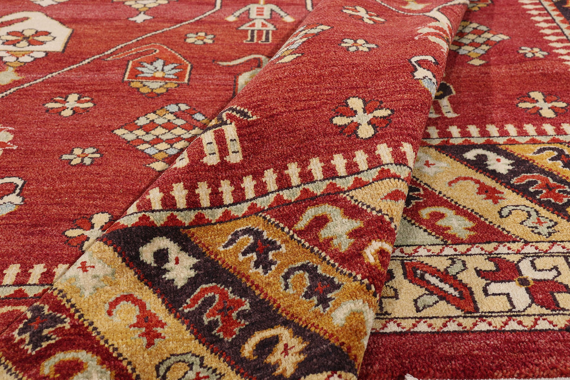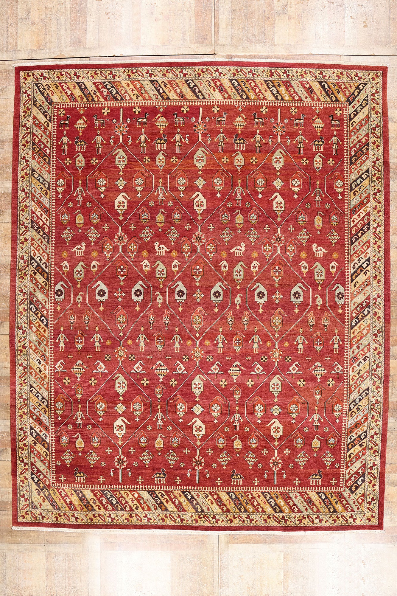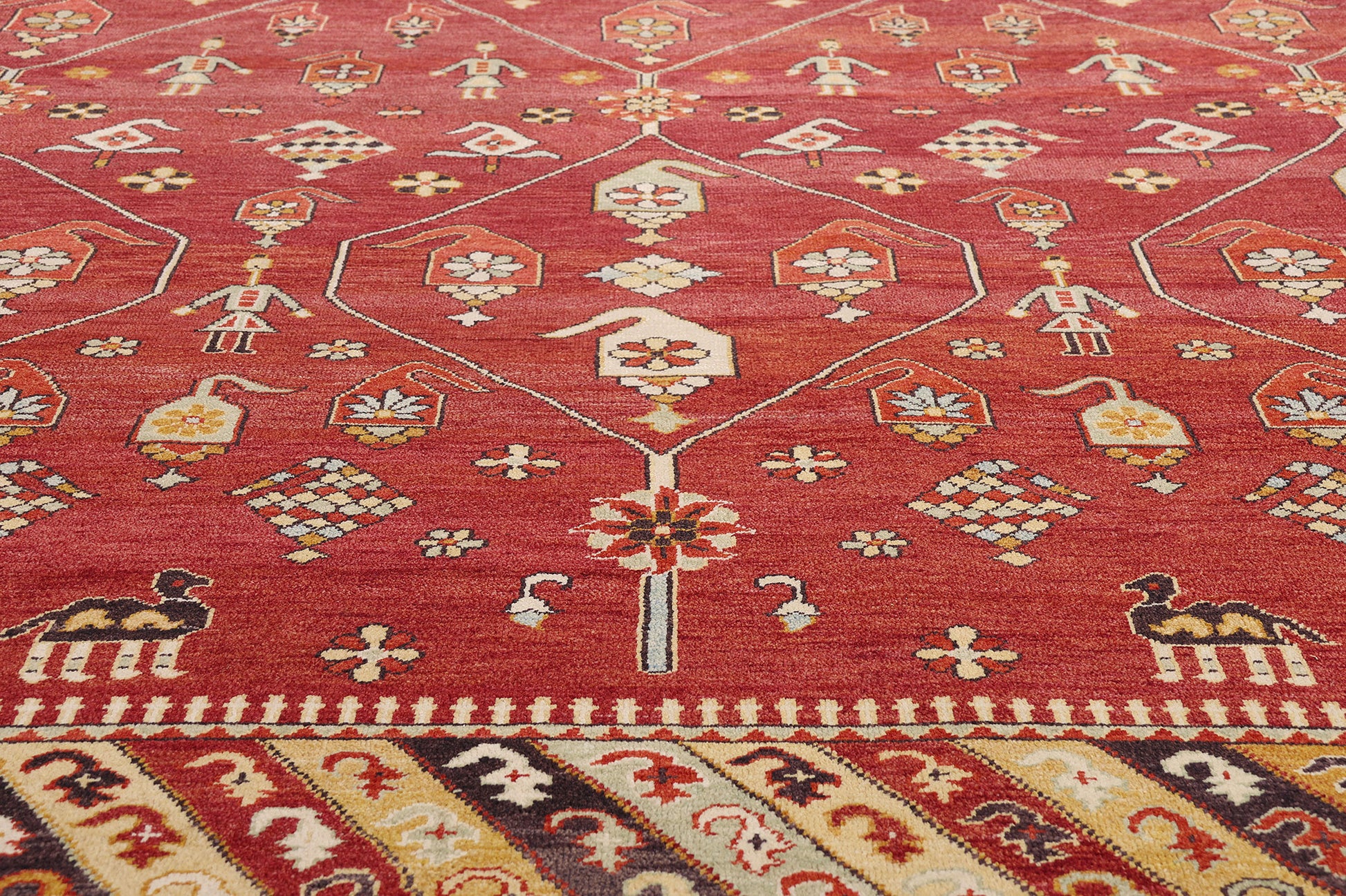 This one-of-a-kind masterpiece is not merely a floor covering, but a storied object of design heritage—steeped in the couture codes of Anatolian textile art. With its fusion of visual storytelling, structural clarity, and luxurious tactility, the rug speaks in a dialect understood by collectors, connoisseurs, and aesthetes alike. It is a statement of worldly sophistication—part myth, part mosaic—stitched with the care and charisma of an heirloom worthy of both reverence and display.