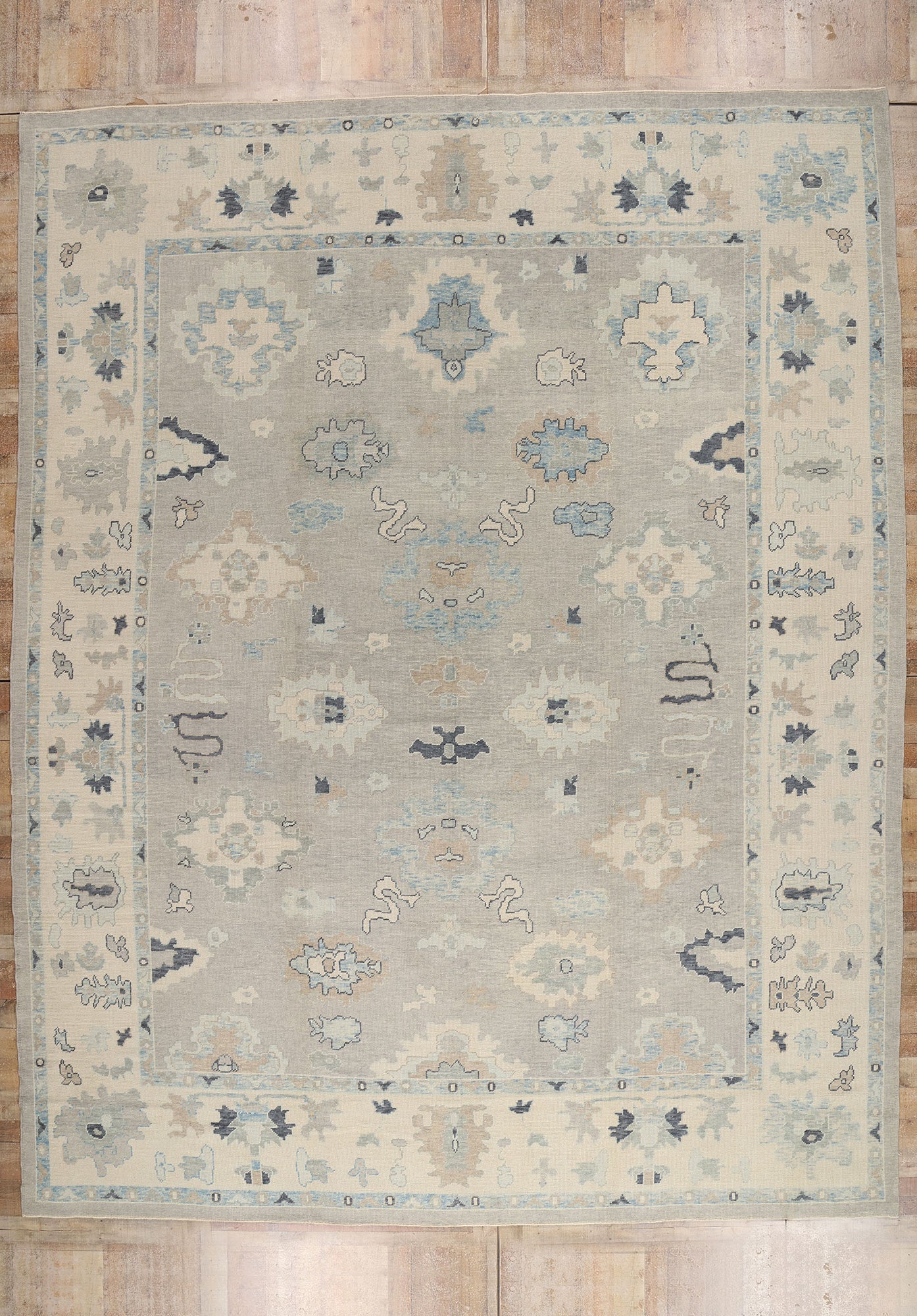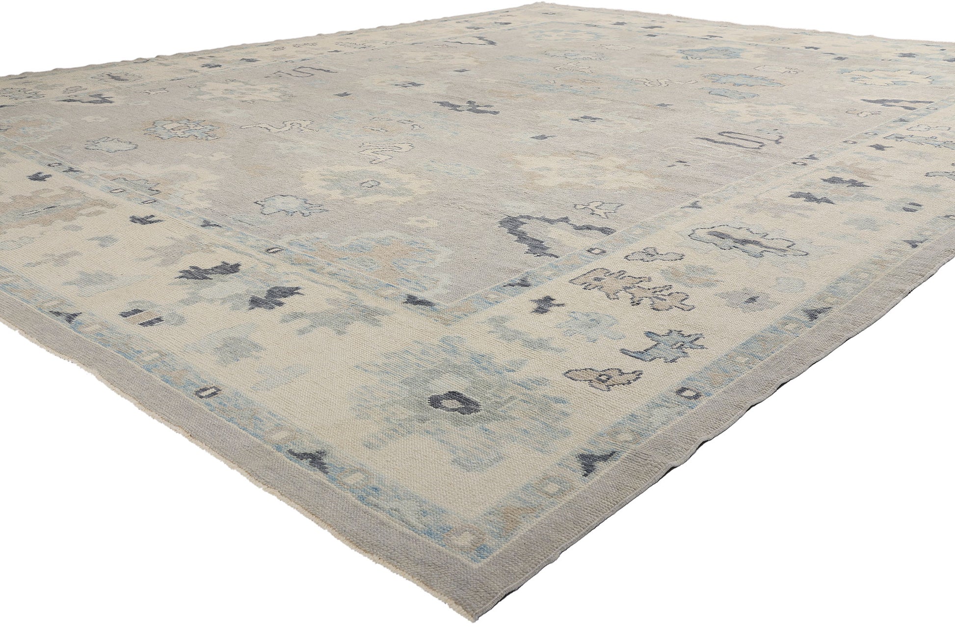 54014 New Modern Gray Turkish Oushak Rug, 12'04 x 15'09.