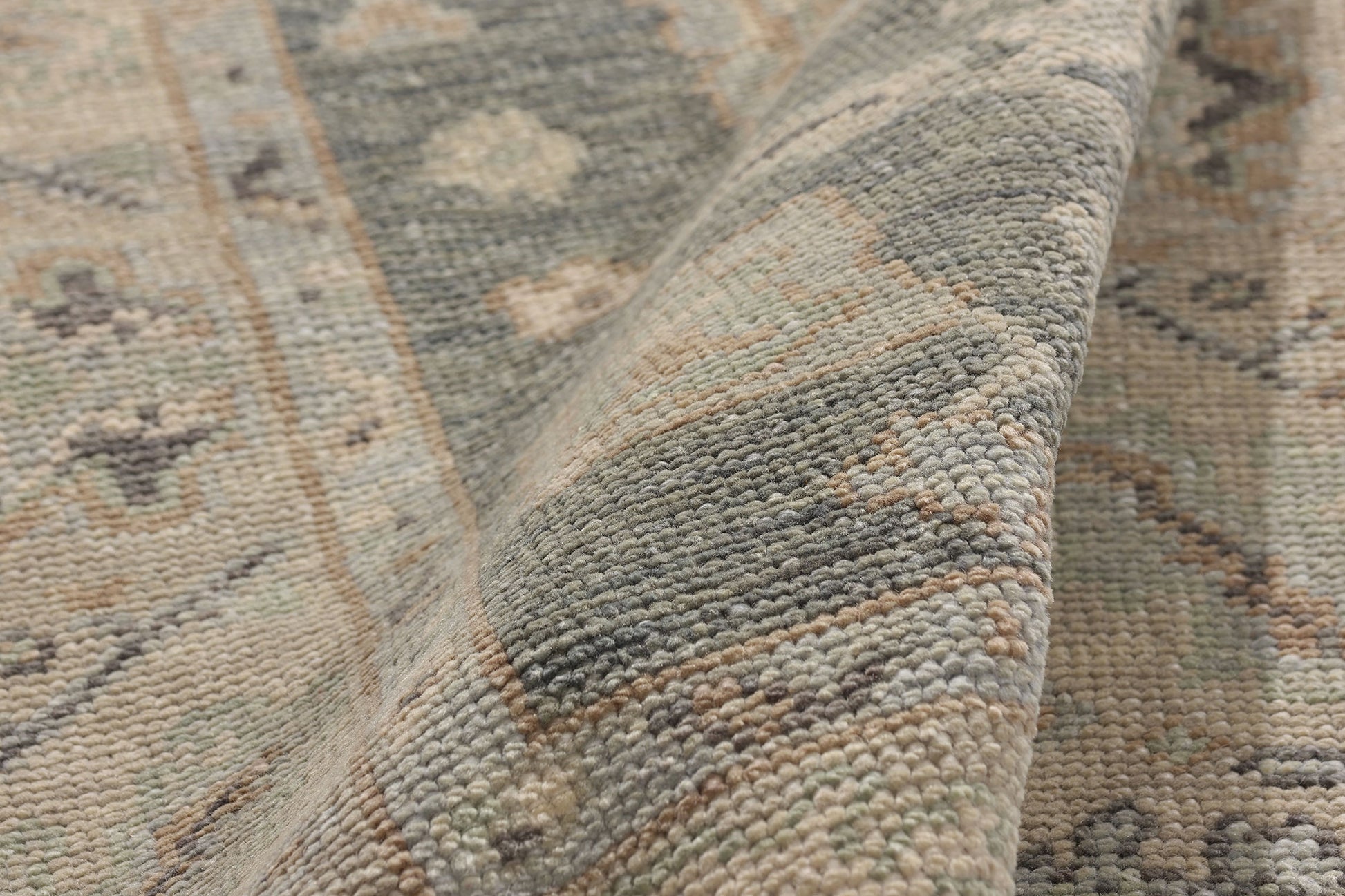 Infused with the quiet power of Anatolia’s weaving legacy, this hand-knotted wool modern Turkish Oushak rug is a testament to how heritage and modern design harmonize in a single work of art. Oushak rugs have, for centuries, defined prestige—gracing Ottoman palaces and the private salons of European elites—and this piece continues that lineage, recast in a palette of soft, serene sophistication.