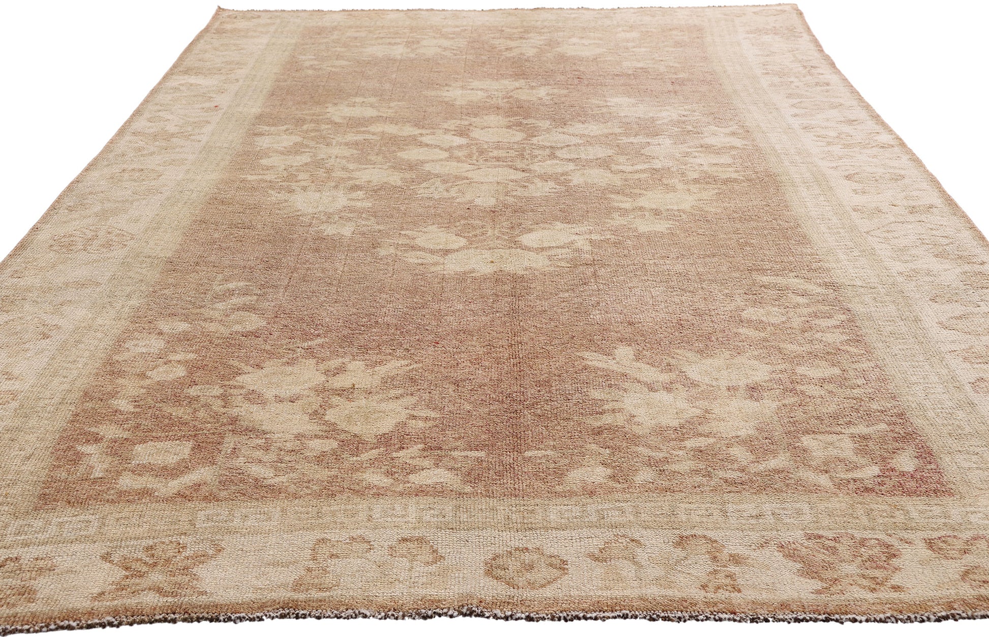 54020 Vintage Earth-Tone Turkish Oushak Rug, 05'04 x 10'01.
