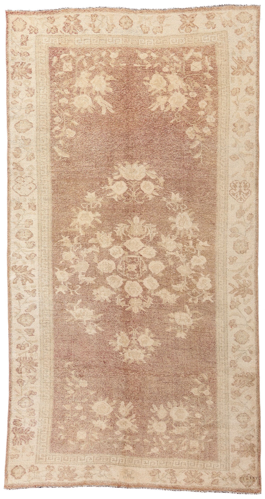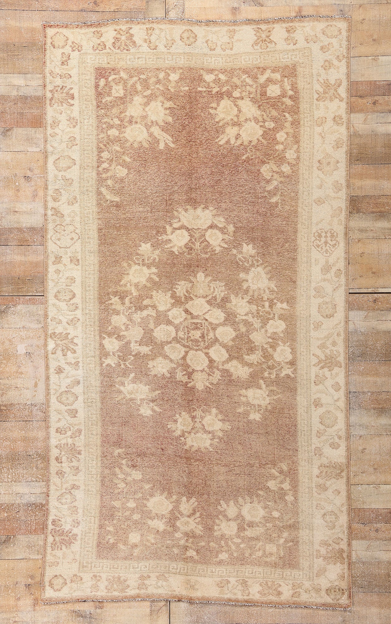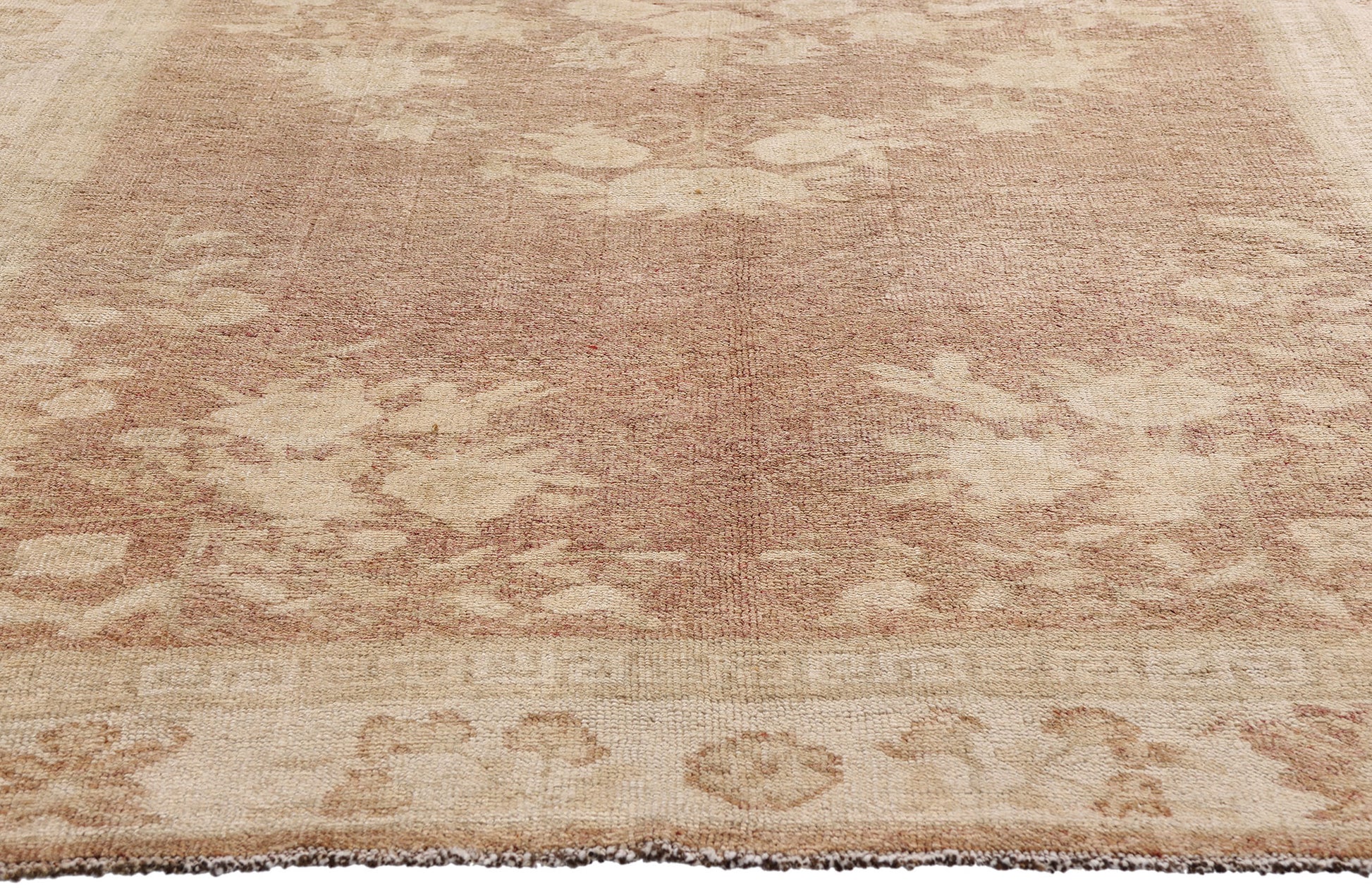 This vintage Oushak rug is more than a furnishing—it is a curated experience, a statement of discerning taste and cultivated heritage. Ideal for the connoisseur who appreciates rarity and soulful design, it offers a grounding sense of peace, a celebration of natural beauty, and a living link to a storied past. Whether gracing a serene study, a gallery-like salon, or a refined bedroom, this rug imparts an atmosphere of timeless luxury, symbolic value, and artisanal integrity.